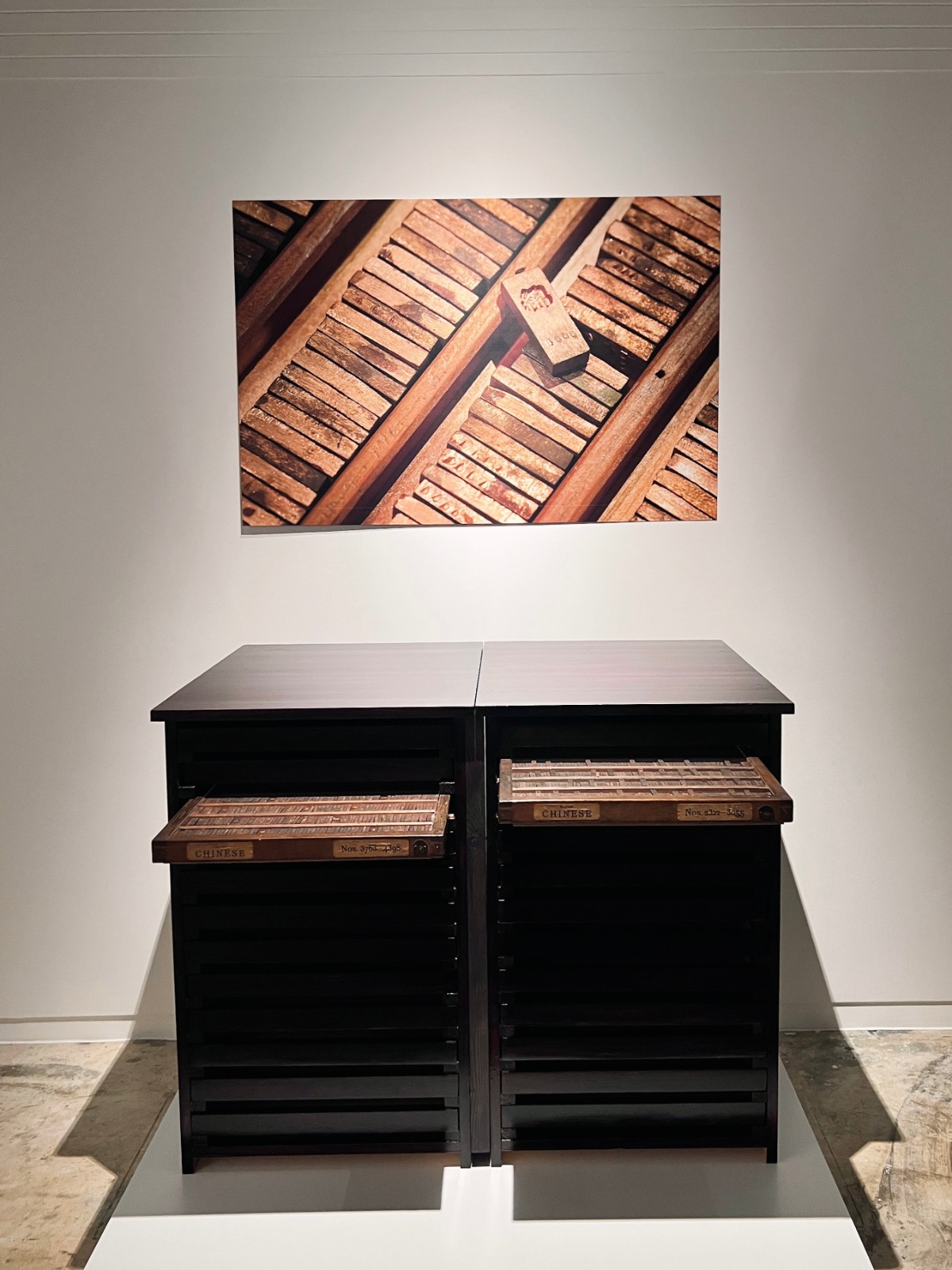 除「香港字」外,二十世紀開始越來越多鑄字行在香港開業,鑄造楷書、宋體和黑體等多款活字,不但於本地銷售使用,也供應至各地華人社群。翁秀梅指,其中規模較大包括博文、建國、達興和永成四間鑄字行,集中於港島中環。在上世紀九十年代,隨柯式印刷出現,活字印刷漸被取代,四間鑄字行亦相繼結業。展覽同場展出另外兩套不同年代的中文字模,來自1950年代古巴夏灣拿的《光華報》,以及來自1980年代威靈頓街永成鑄字行的字模。在一幅《古巴華人》系列攝影作品,可欣賞到《光華報》的工人正按稿件挑出「字粒」,配合現場展示的字模,能想像排版工序十分考功夫。從永成鑄字行的活字又能看見內刻有公司名的中空字,由於中文字以重量計算價格,中空設計可減輕重量,令價格更便宜,展品拼湊出香港曾作為亞洲區內印刷業中心的證據。