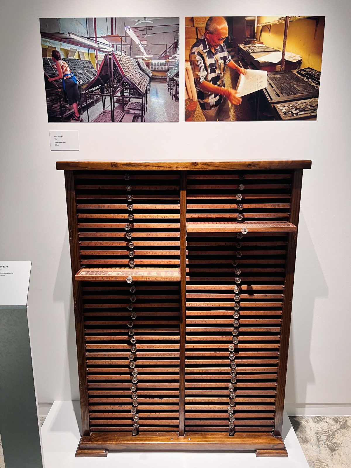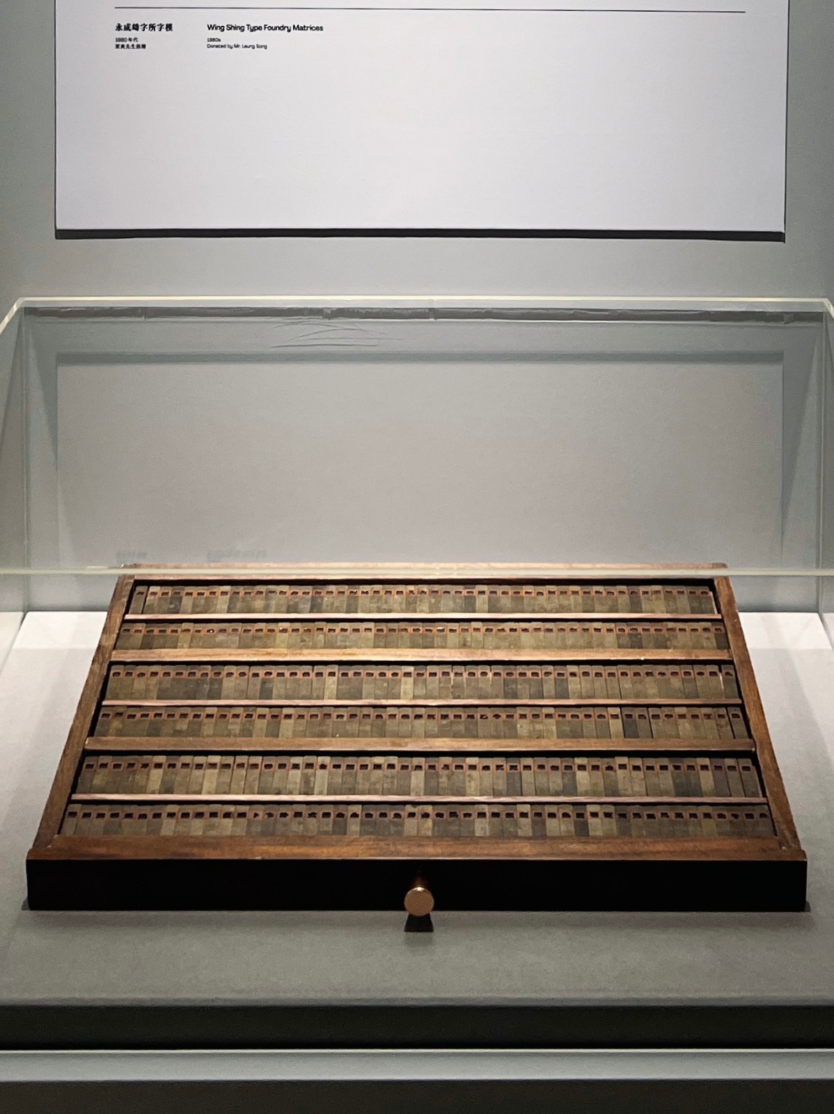 活字印刷起源已久,這種印刷方法,採用可移動的木製或金屬製字模,先由工人撿字,取出所需的字模排版,再掃墨印刷。香港印刷業在上世紀50年代開始步入全盛期,那個年代,香港報業尚未有電腦排版及印刷技術,便是工人按文稿的一字一句排列。世界上第一套完整可用的中文鉛活字「香港字」,由1843年來港的英華書院鑄製,製成後享有最優雅中文鉛活字的美譽。翁秀梅介紹,前幾年發現的主教山水庫的招標書亦是使用這套字模。她表示,這套字模的淵源可追溯至十九世紀初英國倫敦會傳教士來華傳教:「當時的中文字模皆以製作城市命名,在『香港字』出現前,有傳教士、漢學學者曾研發如『柏林字』、『巴黎字』拼合中文字體,把中文字的部首或部件合併,組成不同字,這類字會出現不均稱的情況。『香港字』雖由傳教士製造或監製,但也有華人參與其中,字體的造型結構充滿了中國傳統書法美學。在製成的10年時間成為全球通用的重要中文活字,是翻譯漢學、西學東漸的橋樑。」她指,展品展示了香港字與書法字典截下來的字體對比,「數」、「念」、「疊」採用行書、草書、甚至篆書的簡筆法。