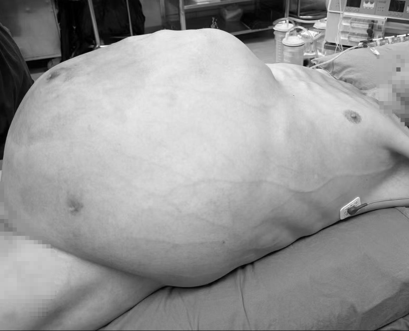 3個月前,黃先生腹脹加劇,腹部明顯增大,如一個「巨球」壓迫身子。多囊肝幾乎侵佔了他腹部的全部空間,其他鄰近臟器受壓。「巨球」的壓迫導致他無法平臥,只能側身睡覺,伴有乏力、食慾缺乏等症狀,苦不堪言。後來,他了解到肝移植是唯一有效的治療手段,於是前往佛山市第一人民醫院治療(下稱「佛山一院」)。