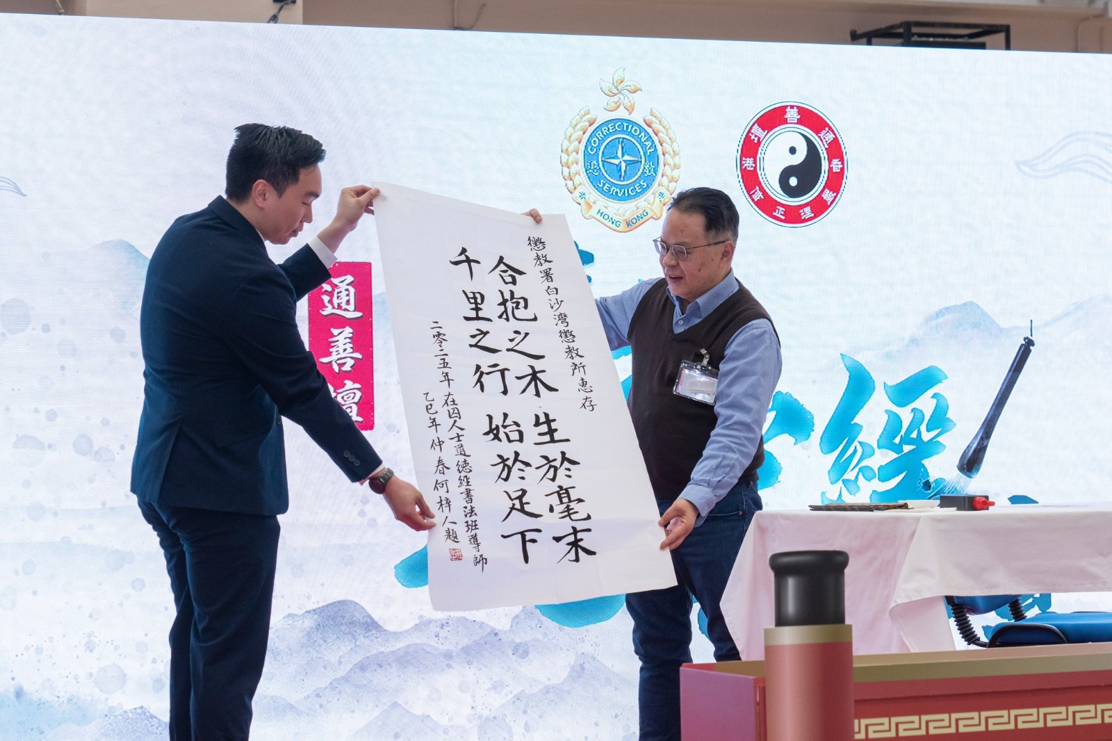 本年有超過300名不同懲教院所在囚人士參與比賽,透過寫毛筆及硬筆書法,弘揚中華文化及陶冶性情。活動當日更邀請書法家何梓人老師即席揮毫,並向在囚人士親自傳授寫書法心得和技巧,透過《道德經》篇章鼓勵在囚人士腳踏實地努力學習,最終可改寫未來,書寫出正向人生。(記者區天海)