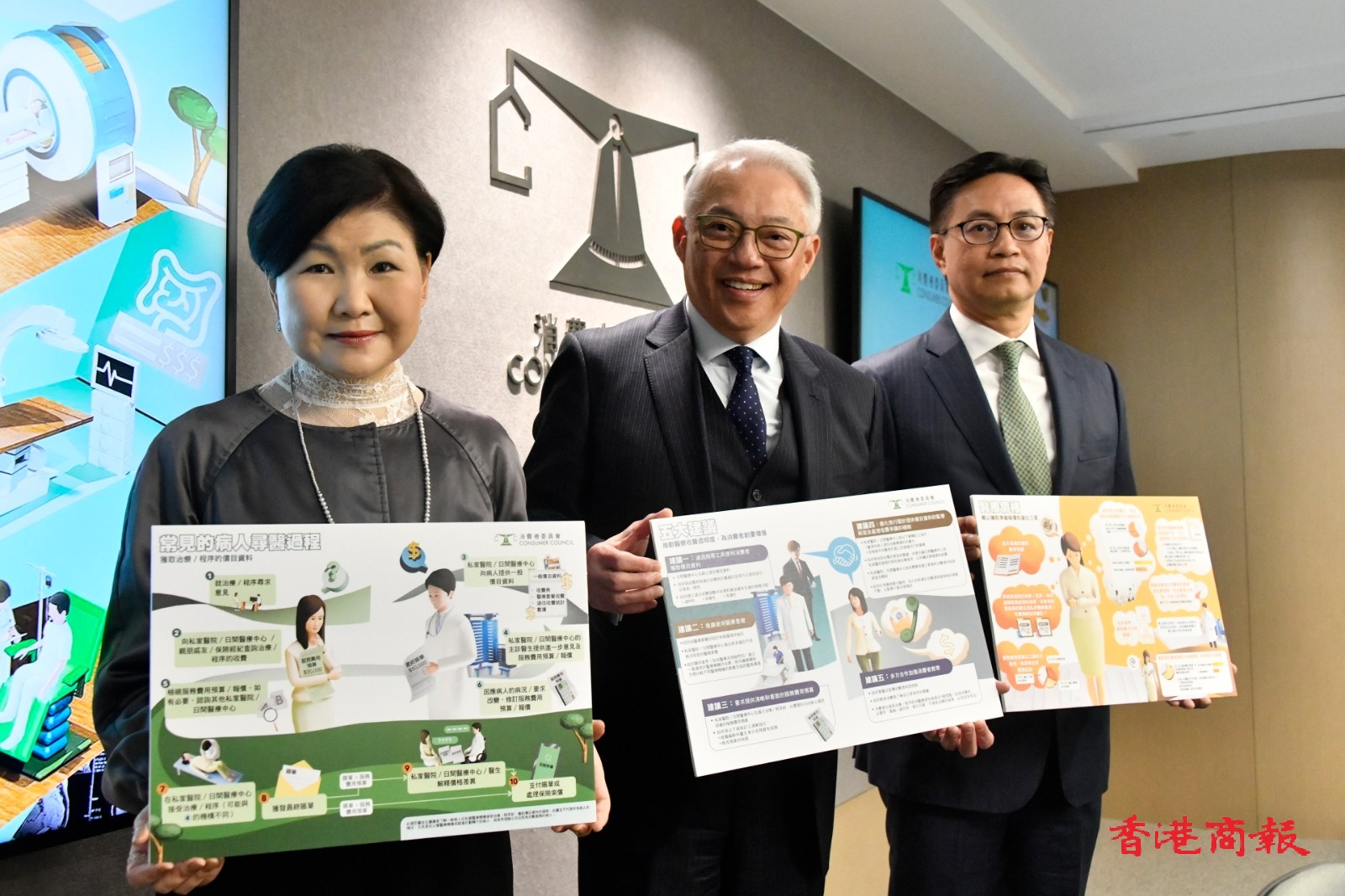 消委會主席陳錦榮(中)、消委會總幹事黃鳳嫺(左)、消費保障政策商營手法及申訴小組主席余承章(右)發表有關香港私營醫療服務收費透明度的研究報告。記者 蔡啟文攝