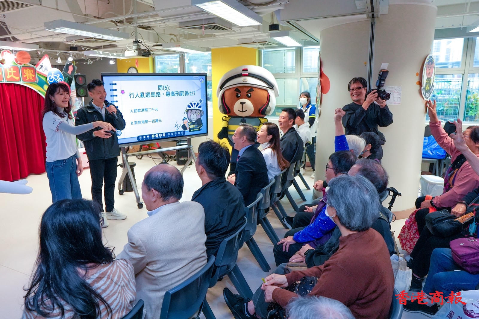 探訪期間,周一鳴更與老友記們進行互動,考驗各位長者道路安全方面的知識,並與兩位大使將道路安全福袋派發給一眾老友記,為長者送上關懷及祝福。活動吸引約80名長者參與,交通總部及道路安全議會吉祥物「熊Sir」 及「留心蛋」也廣受歡迎,長者紛紛與其合照留念。