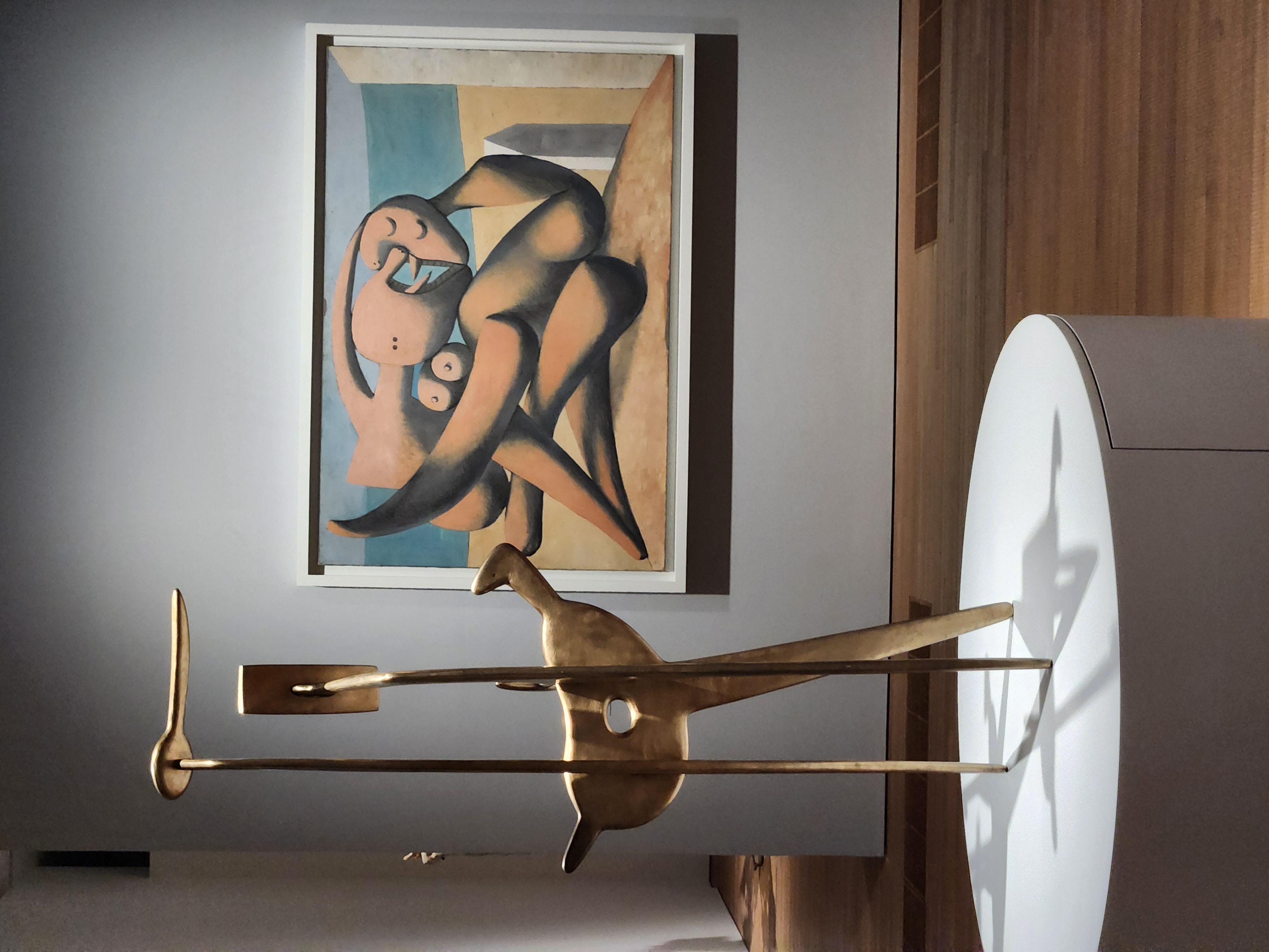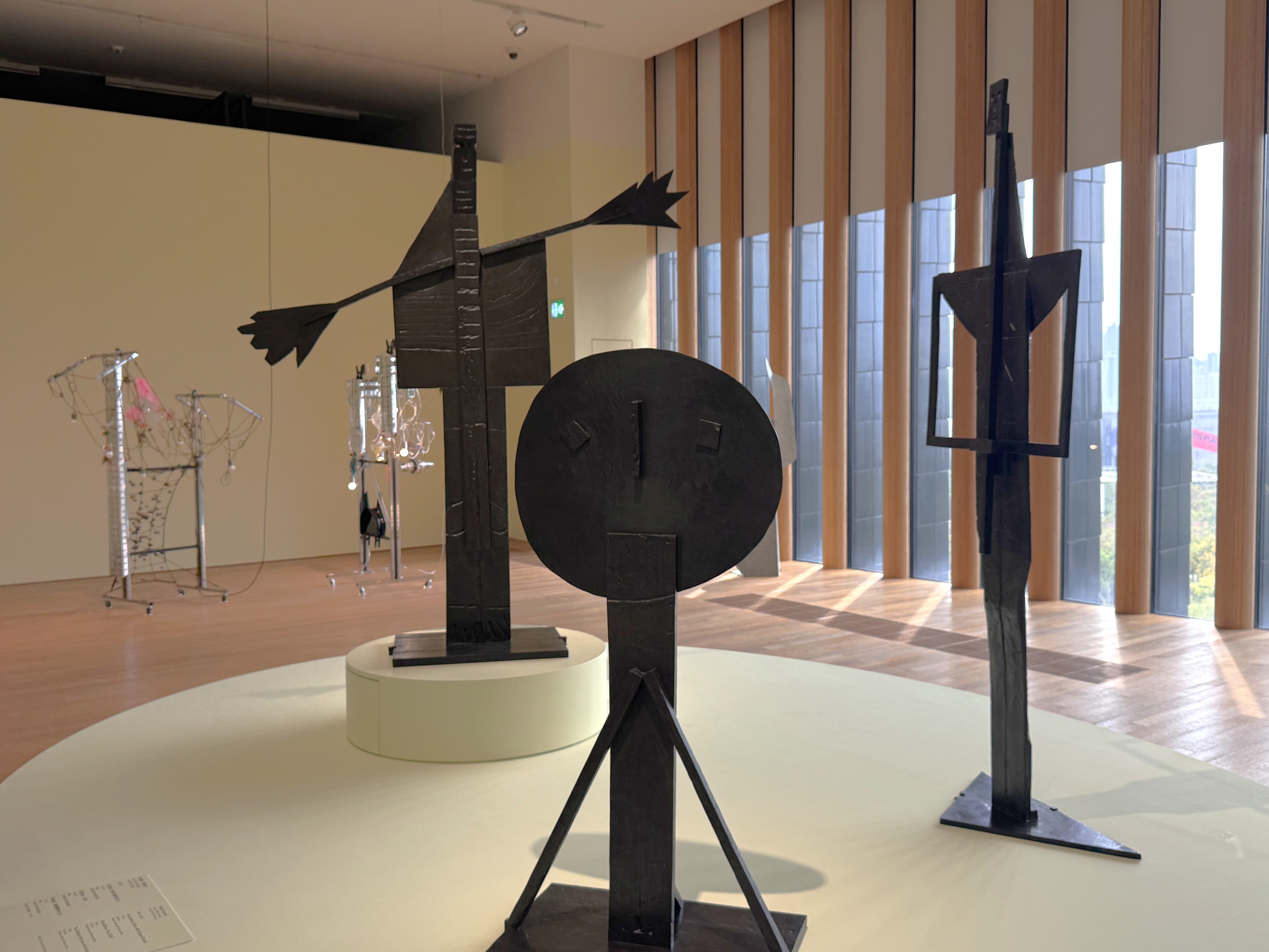 野口勇的《奇鳥》(前)和畢加索的《海邊的人像》(後)隔空對話。