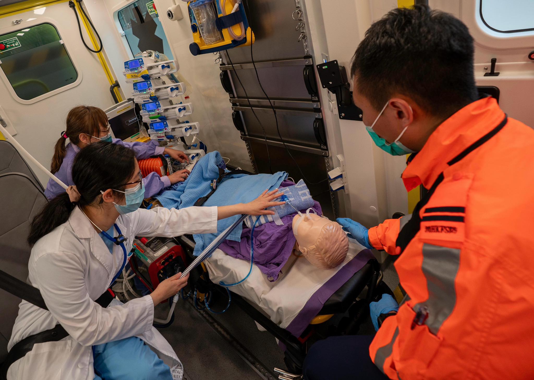 專隊與醫院管理局人員合作,模擬以感染控制及危重病症運送救護車等專隊救護車為有需要的病人進行緊急轉院。專隊救護車配有危重病症專用抬床,負壓系統,油壓升降尾板及自動消毒系統等專用裝備,確保危重及傳染病症病人於得到適切護理的同時,亦充分利用車上的負壓系統以保障外界免受傳染病的威脅。
