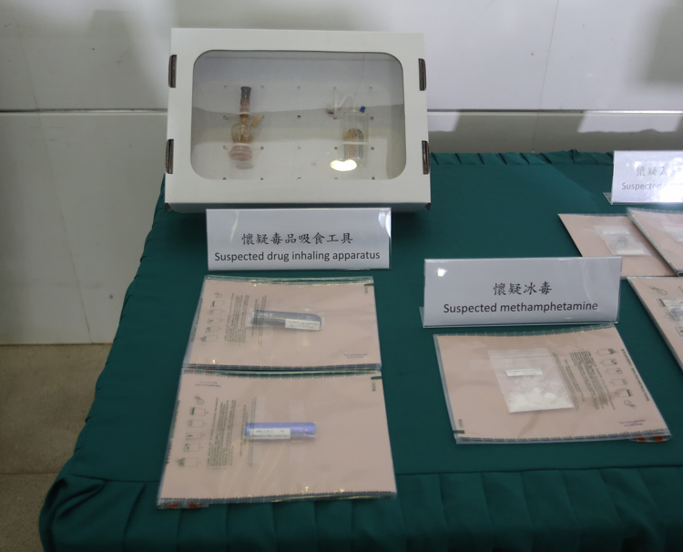 海關人員昨日(31日)在青衣進行反毒品行動,於一公共屋邨截查一名男子,在其身上搜出2粒太空由毒品煙彈和一支電子煙裝置,隨即將其拘捕。其後將疑犯押到邨內一單位進行搜查,再檢獲50粒太空油毒品煙彈、10克冰毒、一支電子煙裝置、一批毒品吸食和包裝工具,在單位內拘捕另外2名男子,被捕3人(31至36歲),均報稱無業,相信有人利用公屋單位作毒品儲存、包裝和分銷中心,供應該區用家。案件仍在調查中,3名被捕人士將會被控以危險藥物相關罪行。