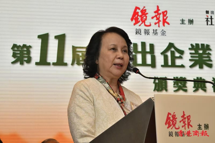 徐新英感謝梁振英,讚揚對方連續十多年對《鏡報》的鼎力支持,是推動社會責任的身體力行者。