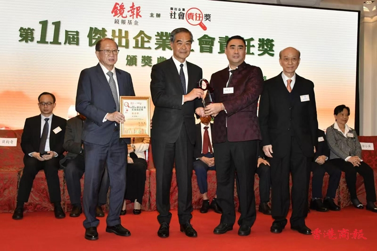 《鏡報》今日(1日)下午在尖沙咀一酒店舉辦「第11屆傑出企業社會責任獎」頒獎典禮。主辦方邀請到全國政協副主席梁振英、《鏡報》執行社長徐新英等人擔任主禮嘉賓。其中坤鼎集團邱明博士榮獲傑出企業家社會責任獎。不少著名的企業家、專家、學者等百多人到場共襄盛典。
