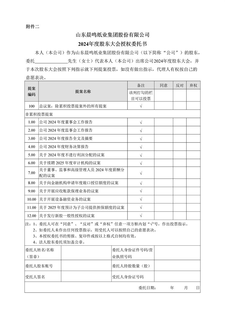 山東晨鳴紙業集團股份有限公司 關於召開2024年度股東大會的通知