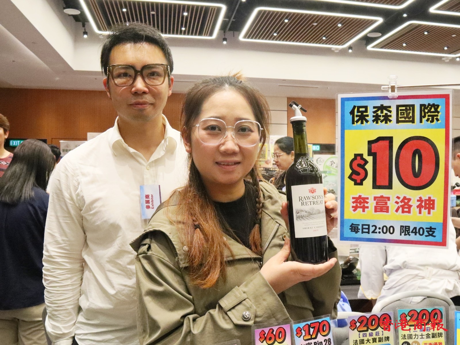 保森國際有限公司銷售及客戶服務經理賴建宇(左)表示,推出10元一支澳州紅酒,目的是吸引市民留港消費。