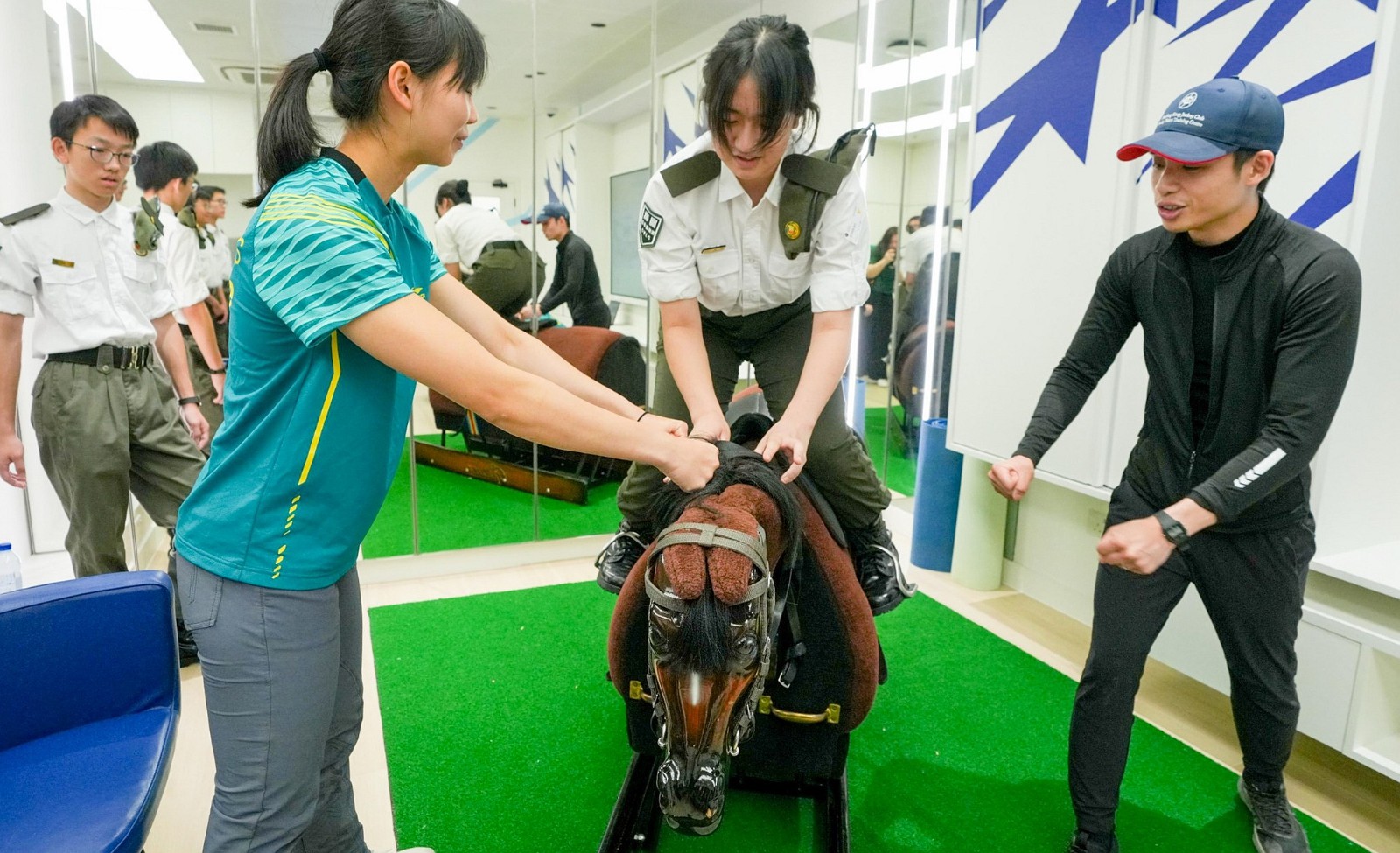 馬會賽馬人才培訓中心高級經理暨見習騎師學校校長陳念慈更作導賞員,向團員講解培訓中心歷史和設施,以及賽事見習學員的日常訓練。團員們隨後走入馬房,近距離餵飼馬匹,並於高級騎術教練專業指導下,以木馬體驗騎師平衡技巧和策騎難度。