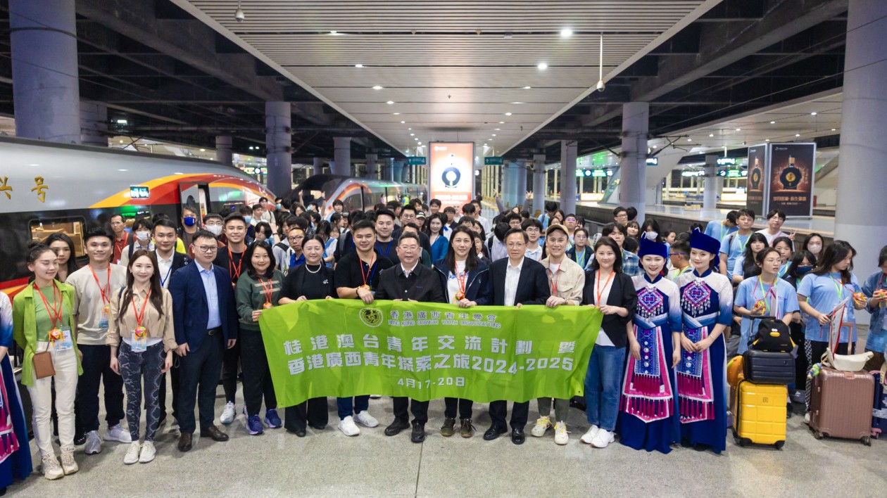 4月17日下午,130多名香港青年學生乘高鐵出發赴廣西交流考察。這是2025「廣西三月三」走進港澳系列活動啟動後,吸引的首個赴桂交流的香港青年學生交流團。