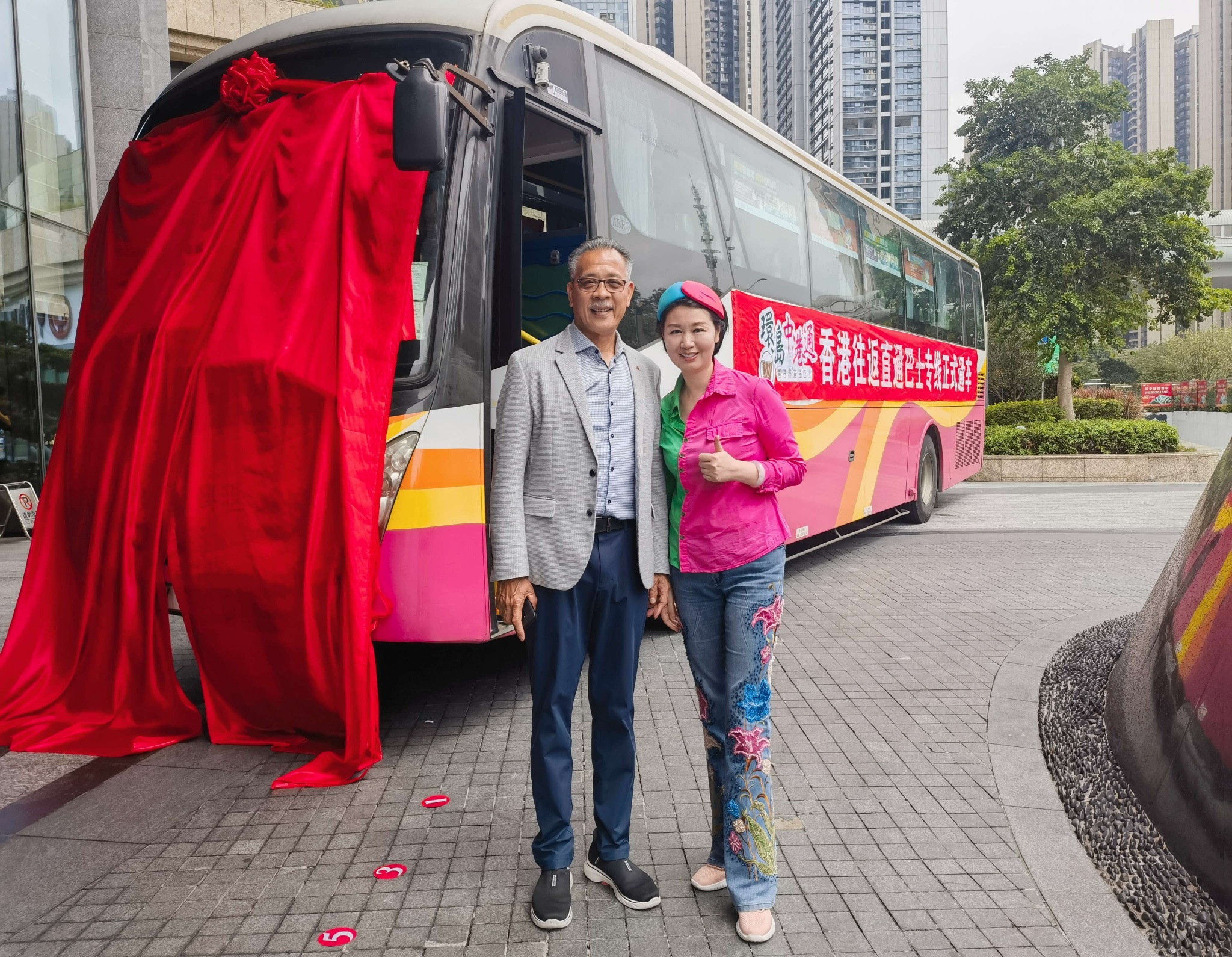 2025年4月25日下午,身披紅繡球的嶄新跨境巴士在深圳市光明區美爵酒店候機廣場上驚艷亮相,在深港兩地嘉賓的共同見證下,象徵灣區融合的紅綢絲帶徐徐飄落,光明直通香港的首條「『港』到『明』」跨境巴士專線宣告正式開通運營。