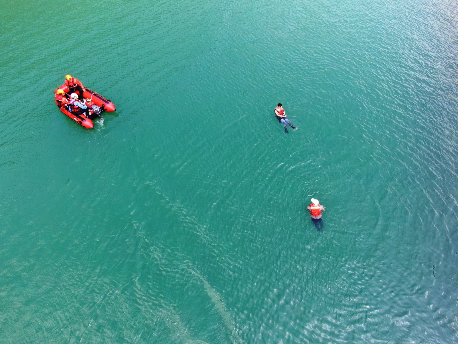 此次演習模擬多項情景,包括居民受洪水圍困、樹木倒塌阻塞道路以及傷者處理等。在演習中,民安隊救援隊伍設立傷者處理站,並利用無人機、機械犬和遙控救生圈等科技進行救援,以確保有效且迅速地展開行動。(記者 區天海)