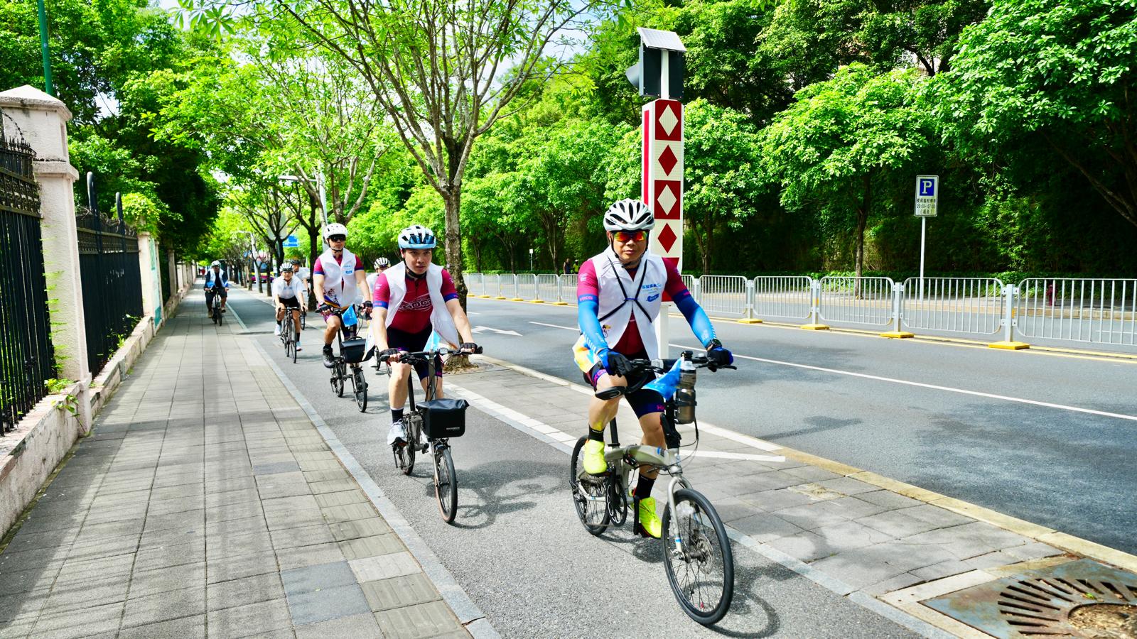 單車隊聯同深圳大學單車協會成員組成騎行團,沿蓮塘口岸至深圳水庫開展城市騎行,親身領略「東江水越山來」的工程壯舉,及這項工程背後「一水同源、血脈相連」歷史。(記者 區天海)