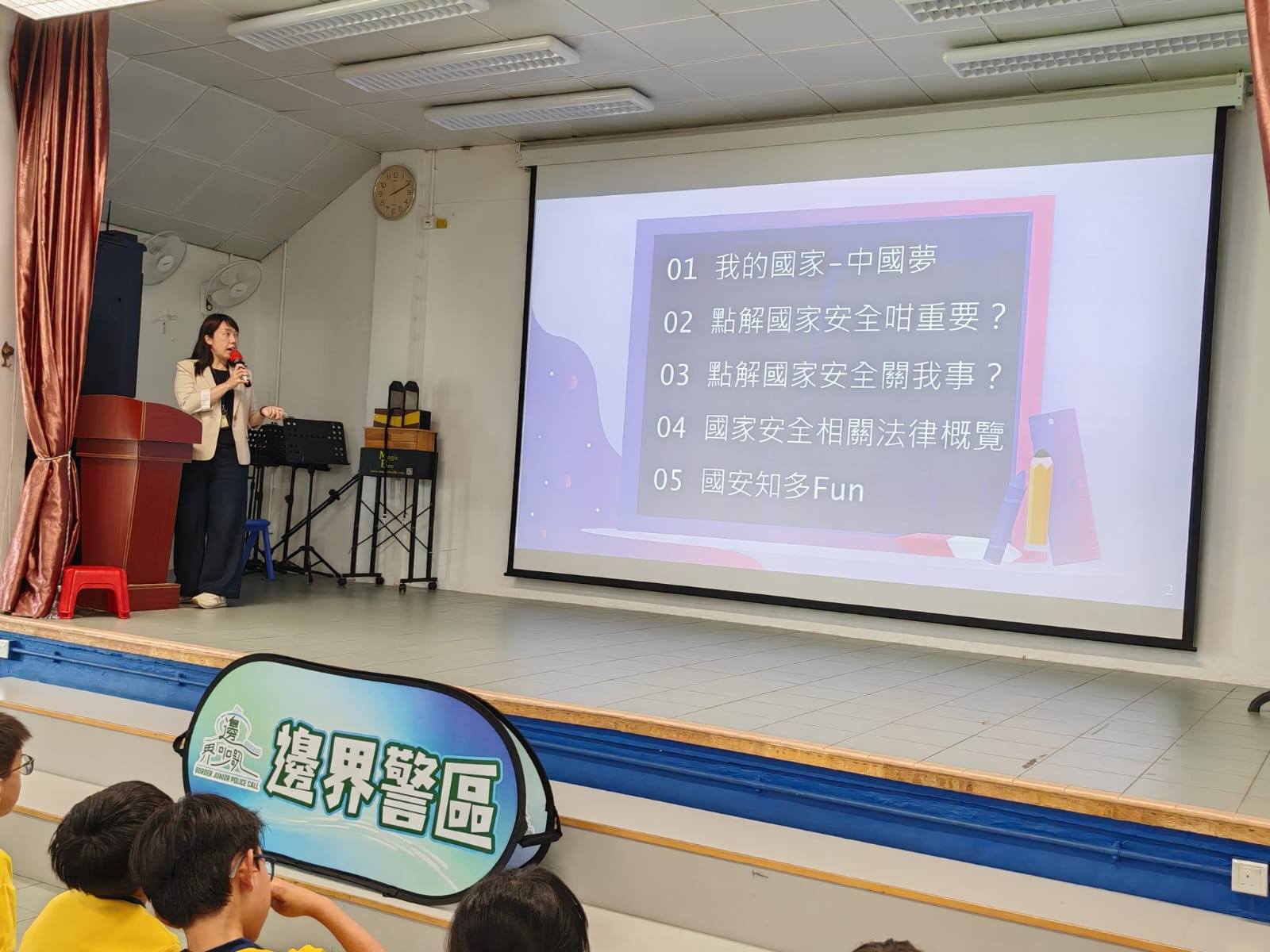 邊界警區警民關係組人員日前到訪打鼓嶺嶺英公立學校,舉辦「國家安全教育講座」,向師生們講解香港國安法的制定及背景,從而帶出認識國家安全的重要性,旨在提高學生們對維護國家安全的意識、責任及對國家的歸屬感,培育他們成為愛國愛港及守法的市民。