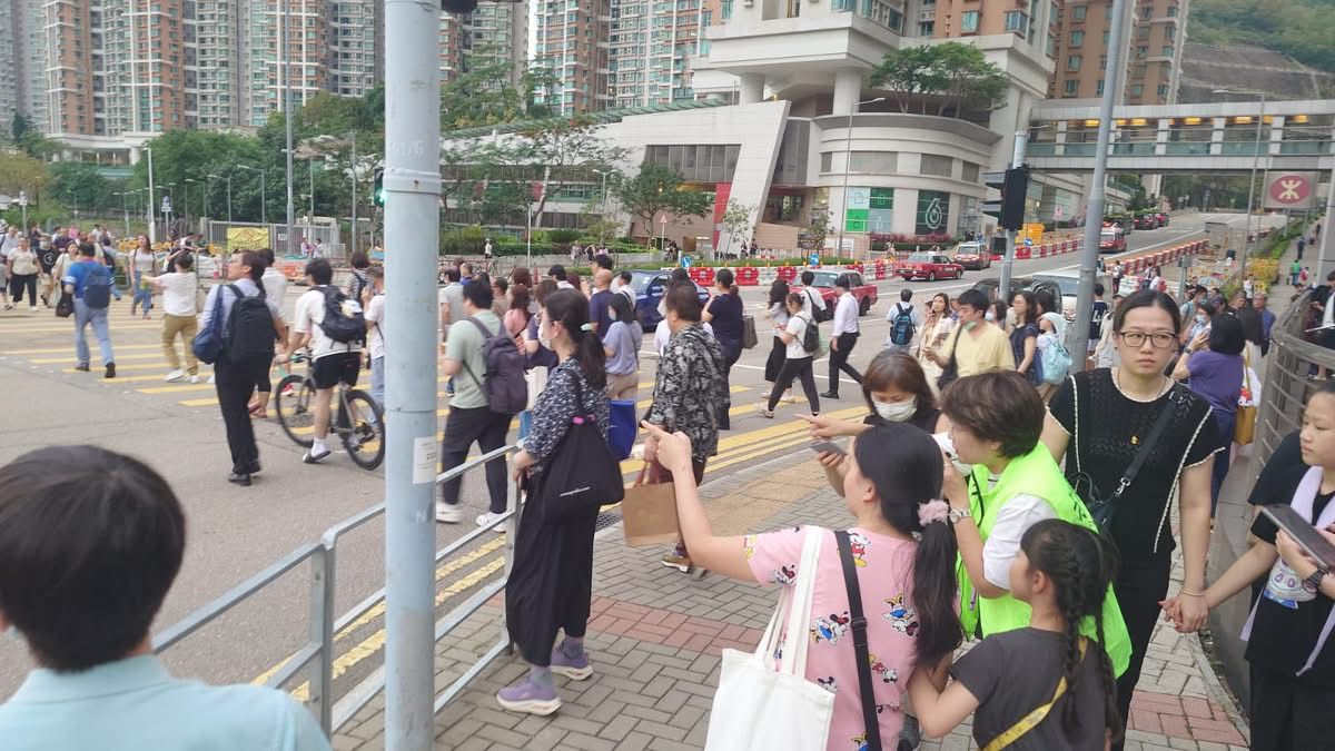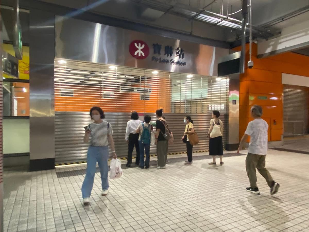 港鐵寶琳站一度關閉,大批市民等候乘搭接駁巴士或步行回家。(西貢區議員方國珊提供圖片)