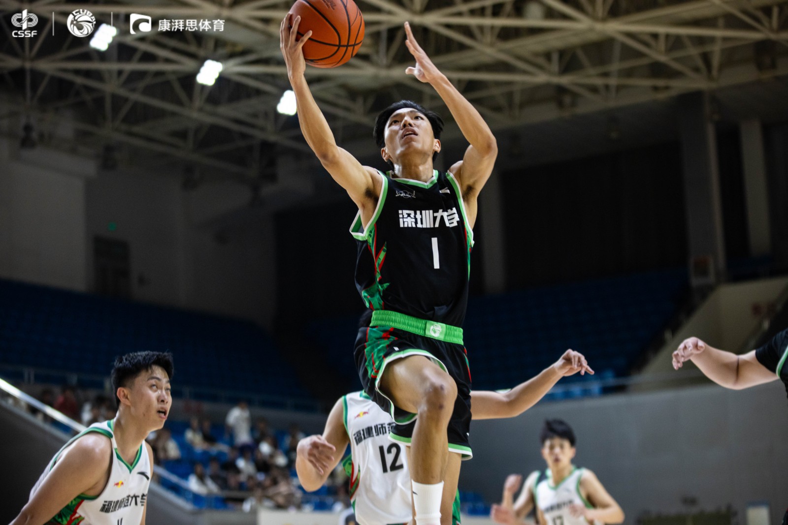 全國總決賽階段,深大男籃以六場比賽全勝、合計勝分131分的戰績捧杯全國總冠軍。頒獎典禮上,隊員們高高舉起校旗環繞全場,頒獎詞也對他們的拼搏精神給予最高褒獎:「他們用汗水澆灌夢想,用團結征服賽場,以無可阻擋的姿態站上巔峰!」