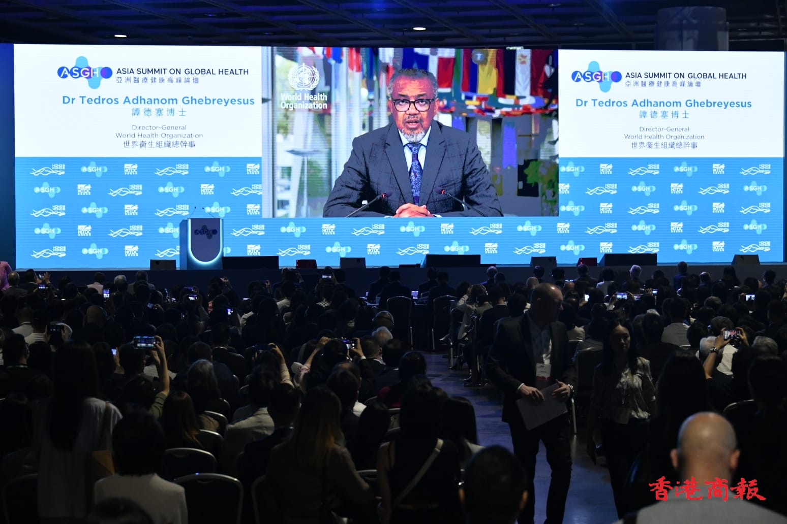 世界衛生組織總幹事譚德塞預錄致辭,形容第五屆「亞洲醫療健康高峰論壇」主題「全球協作 共創未來」鑑於目前全球健康面臨的挑戰是再適合不過。世界衛生大會歷史性地通過《大流行病協定》,該協議經過3年半談判,展現了真正的全球健康國際合作精神。它發出一個強而有力訊息,就是多邊主義是有效,在這分裂時代,各國可為了更大利益而找到共同點。他感謝各位對全球健康和多邊主義的承諾,重申通過共同努力,可為所有人建立一個更健康、更安全、更公平世界。