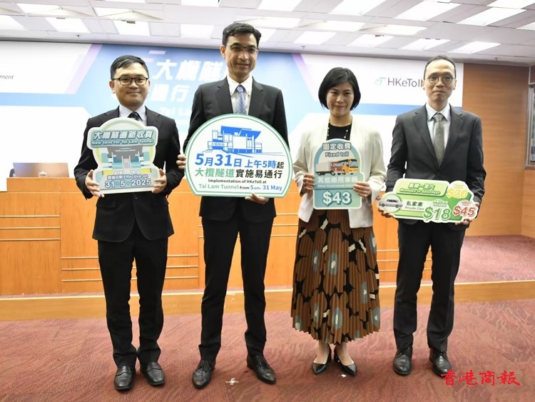 頂圖圖説:運輸署今午舉行記者會,宣布將於本月31日接收大欖隧道以及大幅下調收費,上午五時起實施「易通行」。