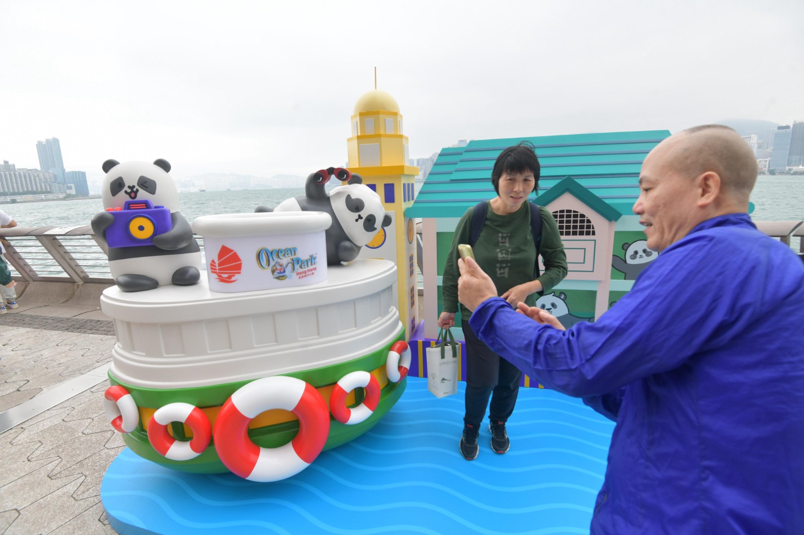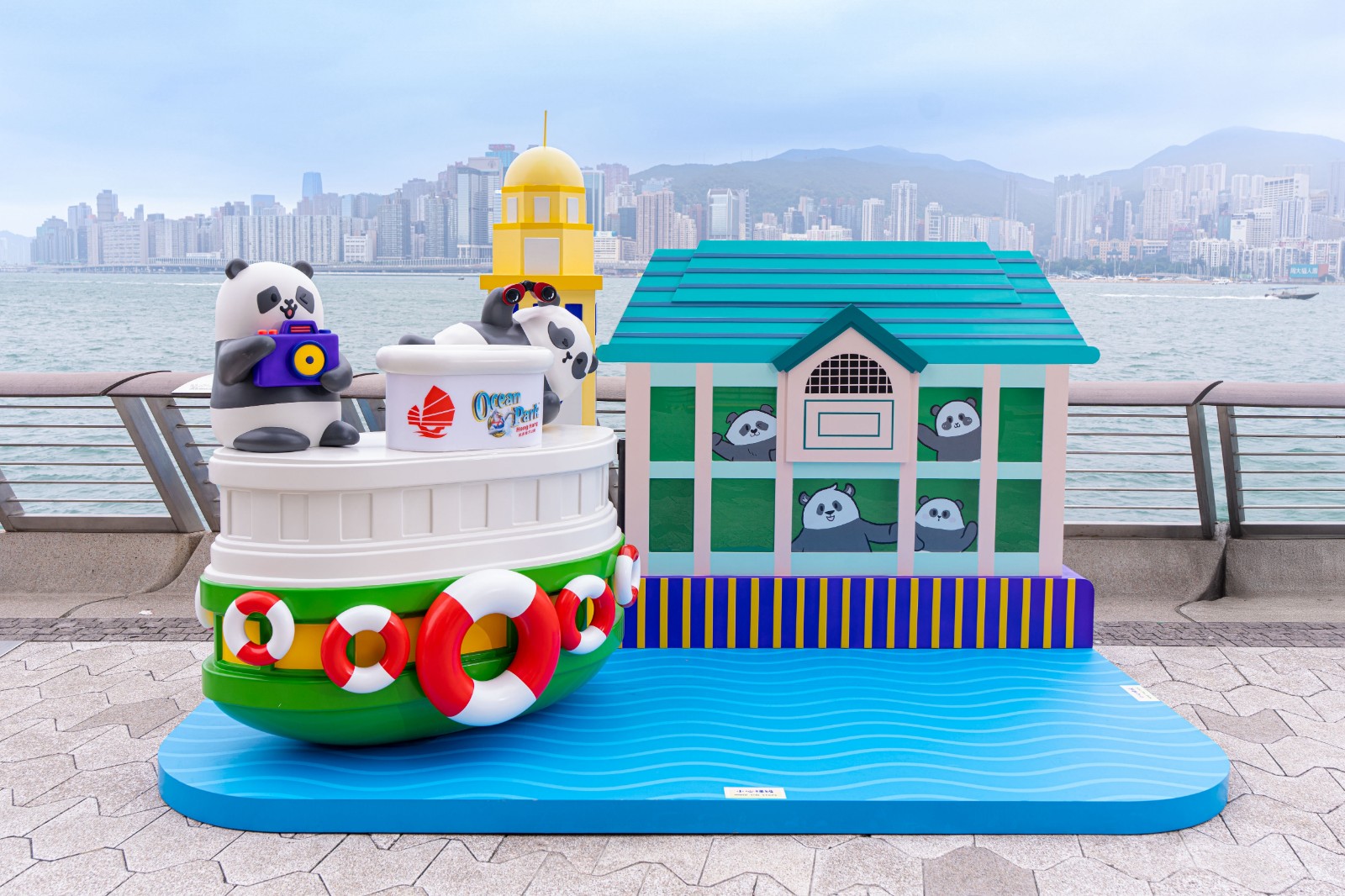 香港海洋公園超萌「Panda Friends」,包括大熊貓安安、可可、盈盈、樂樂、龍鳳胎寶寶加加及得得,即日起至6月8日,登陸星光大道三大打卡點,牠們以端午節主題造型驚喜亮相,加加和得得亦邀請市民旅客分別坐上「千秋君」或站於天星小輪旁,以維港為背景一起打卡留念,推廣本地特色。