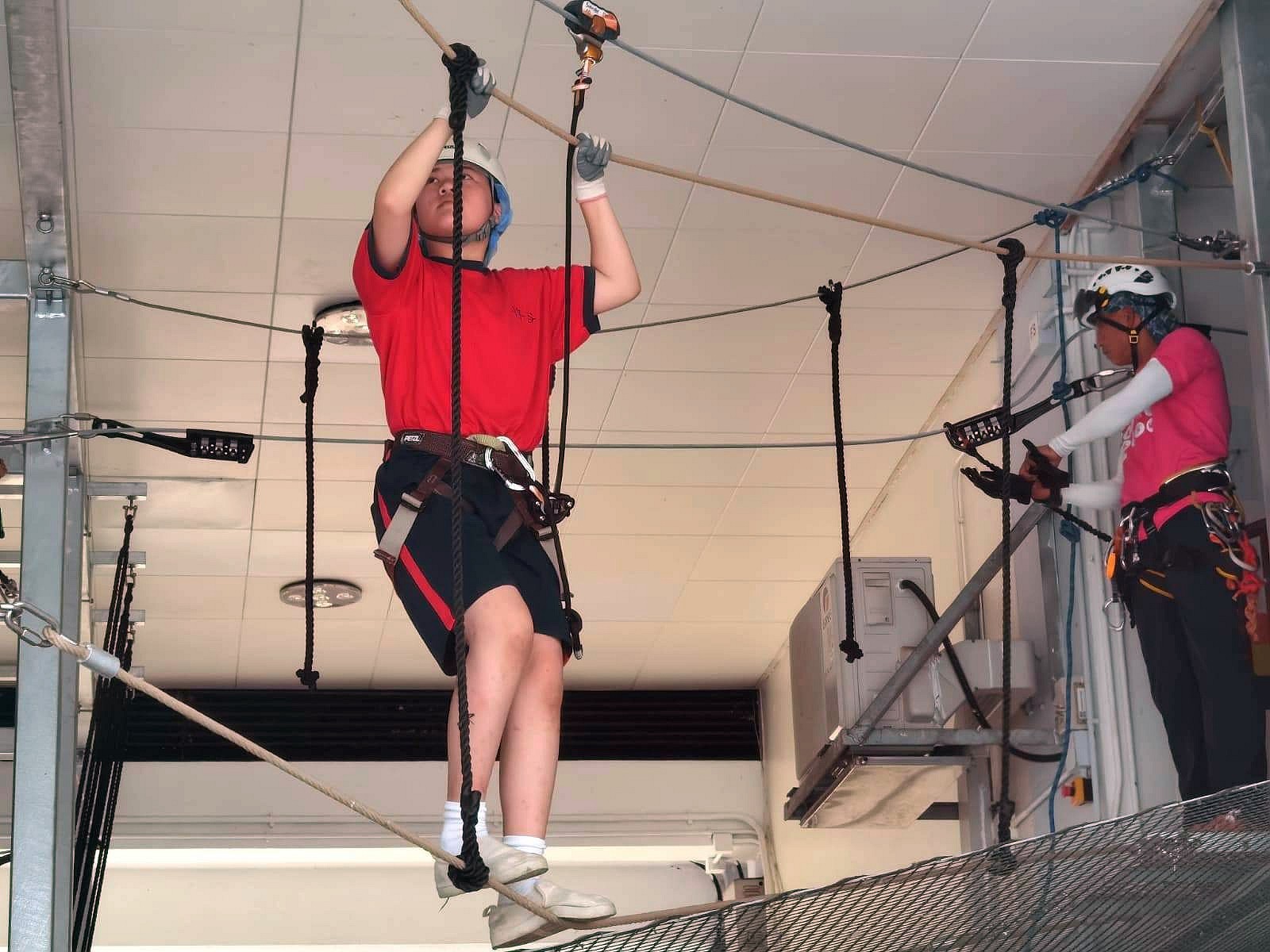 少訊會員和老師們共同體驗「無聲飯堂」,在規律中感受紀律的意義。全天活動緊湊豐富,不僅有戶外挑戰,還設置雨天備案、即由繩網項目轉至雷射靶場體驗,確保行程順利進行。經歷一天學習,少訊們實踐強化守法意識與團隊默契。(記者區天海)