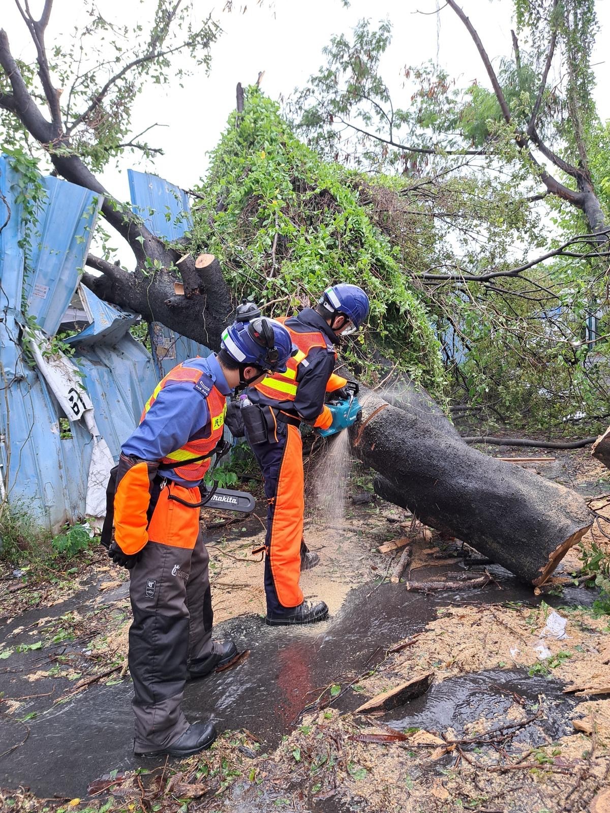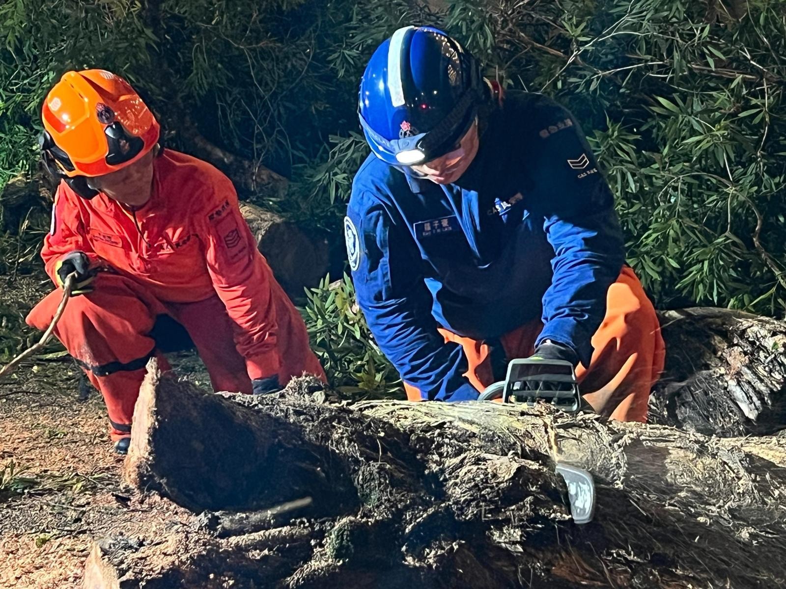直至昨日(20日)晚上10時半,民安隊隊員分別在港九新界各處,包括香港仔、金鐘道、司徒拔道、西貢北港、彩雲邨、彩虹、九龍灣、葵涌、天水圍及屯門虎地等地點清理塌樹,讓交通及行人要道回復正常。(記者區天海)