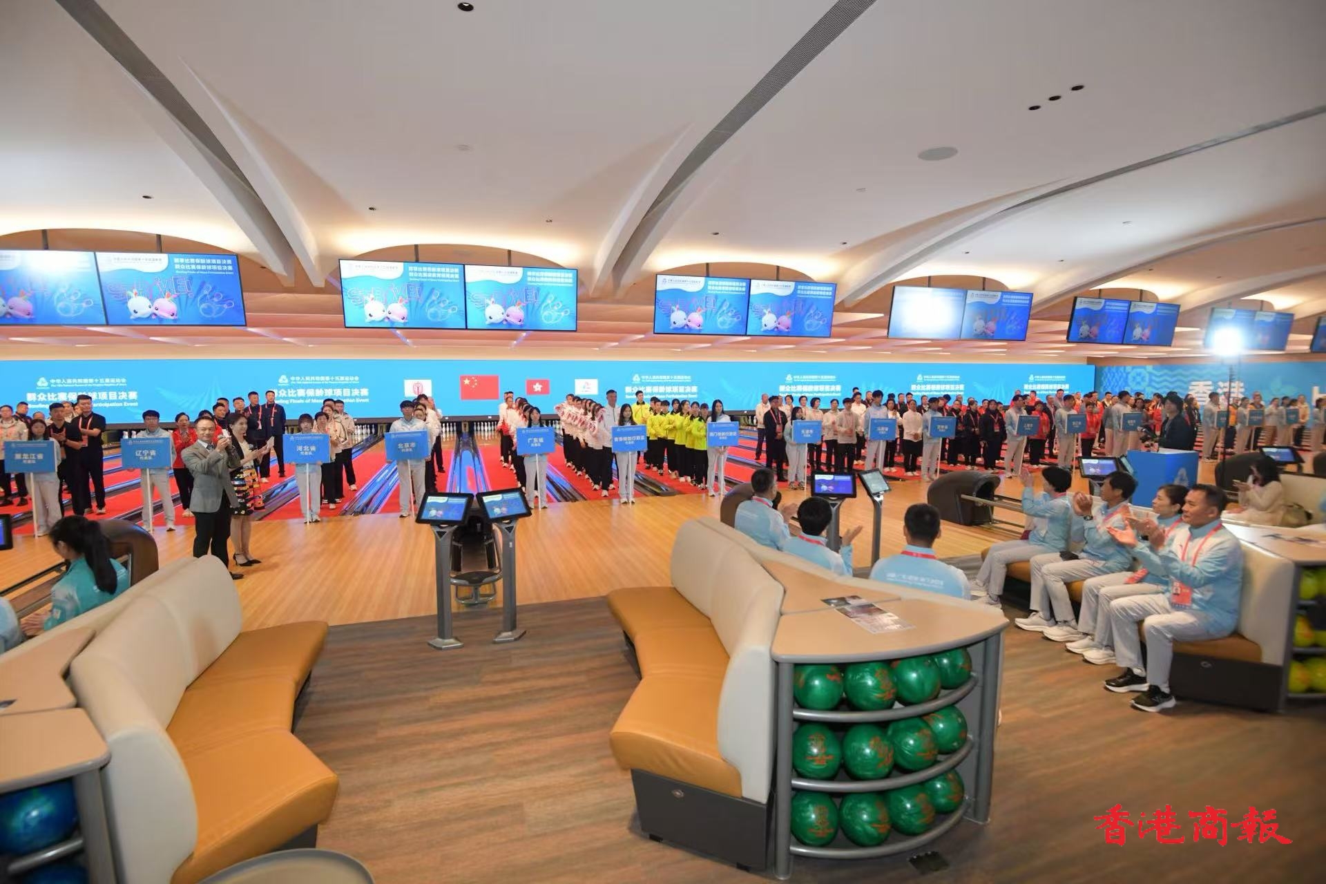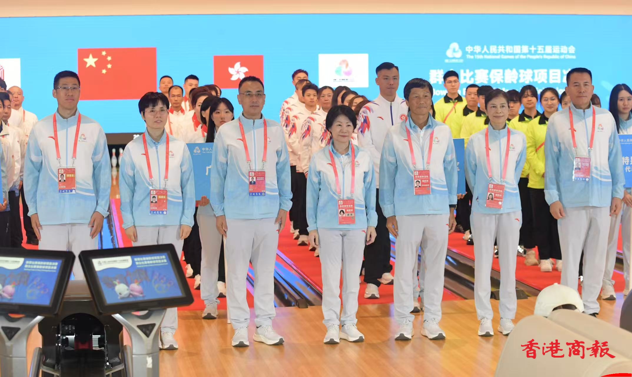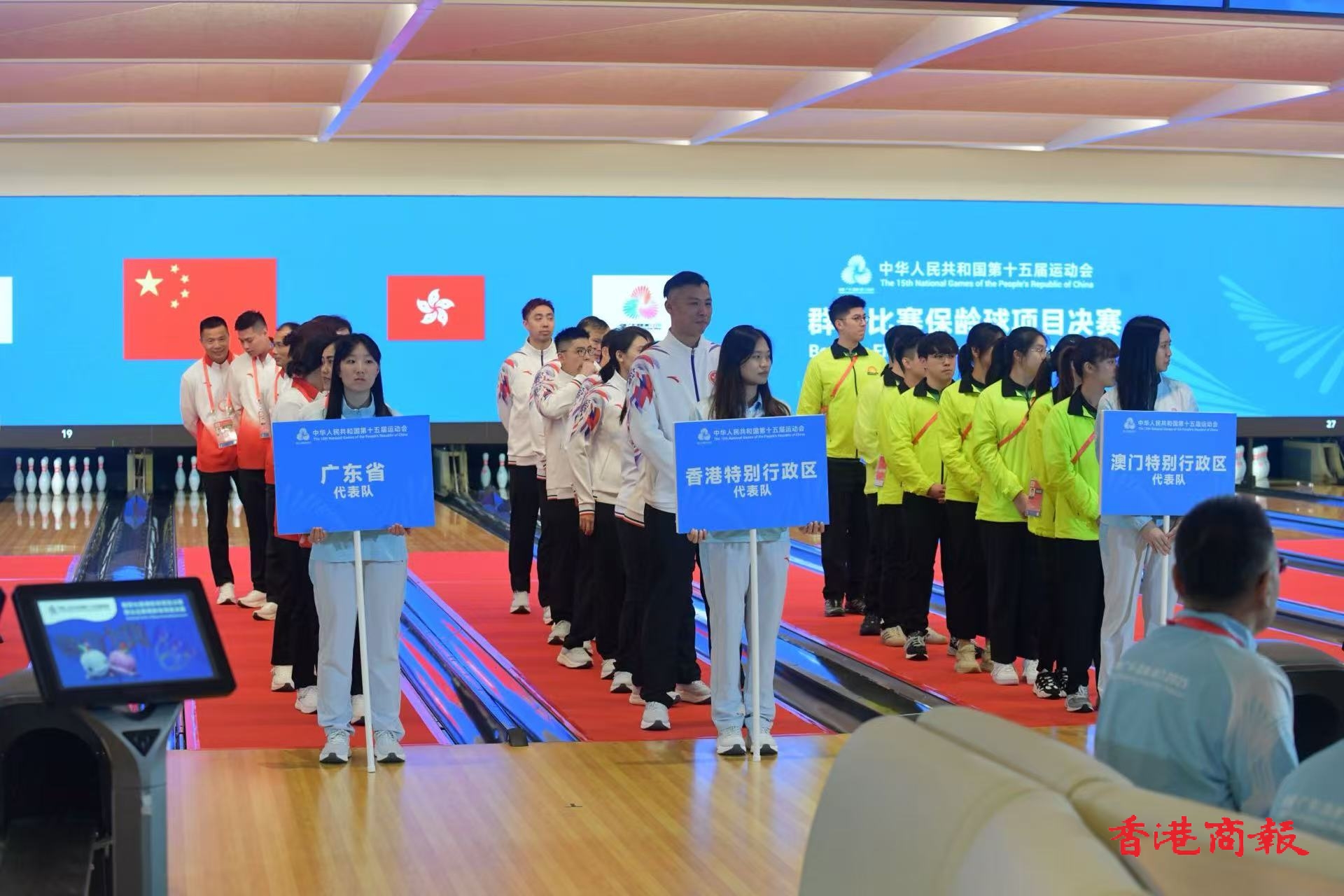 第十五屆全運會香港賽區首項賽事群眾比賽保齡球項目決賽,明日(22日)起一連三日在啟德體育園保齡球中心舉行。開賽儀式今日(21日)傍晚舉行,包括香港特區在內的27支代表隊出席儀式,現場奏唱國歌,香港代表團男子代表甘兆麟代表全體運動員宣誓,文化體育及旅遊局常任秘書長沈鳳君宣布比賽開始。