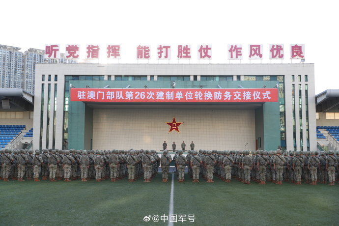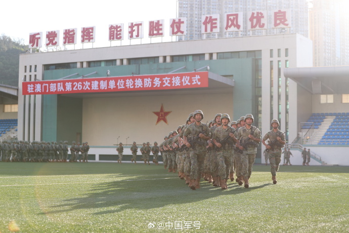 中國人民解放軍新聞傳播中心報道:根據《中華人民共和國澳門特別行政區駐軍法》和中央軍委命令,中國人民解放軍駐澳門部隊於2025年8月22日組織了進駐澳門以來第26次建制單位輪換。