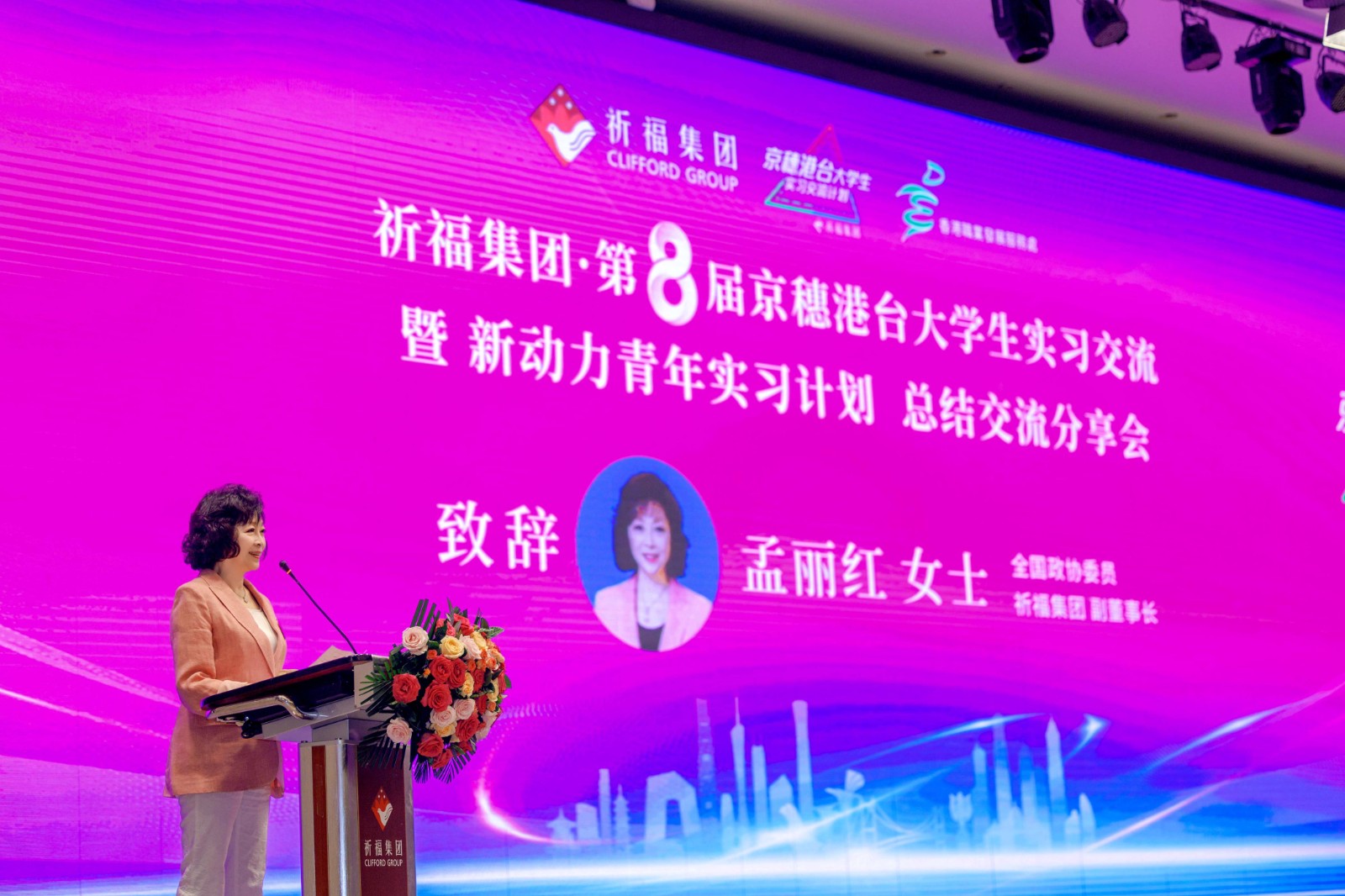 「祈福集團京穗港台大學生實習交流計劃」,由全國政協委員、祈福集團副董事長孟麗紅女士發起,至今已成功舉辦8屆,活動以「規格高、規模大、時間跨度長、地域覆蓋廣、交流程度深、活動安排豐富、形式創新」為顯著特點,是粵港澳大灣區最具影響力的青年交流項目之一!匯聚數百名京穗港台青年,舉辦100多場豐富活動,不同口音,笑聲同頻,在國旗下共赴同一個夢想!