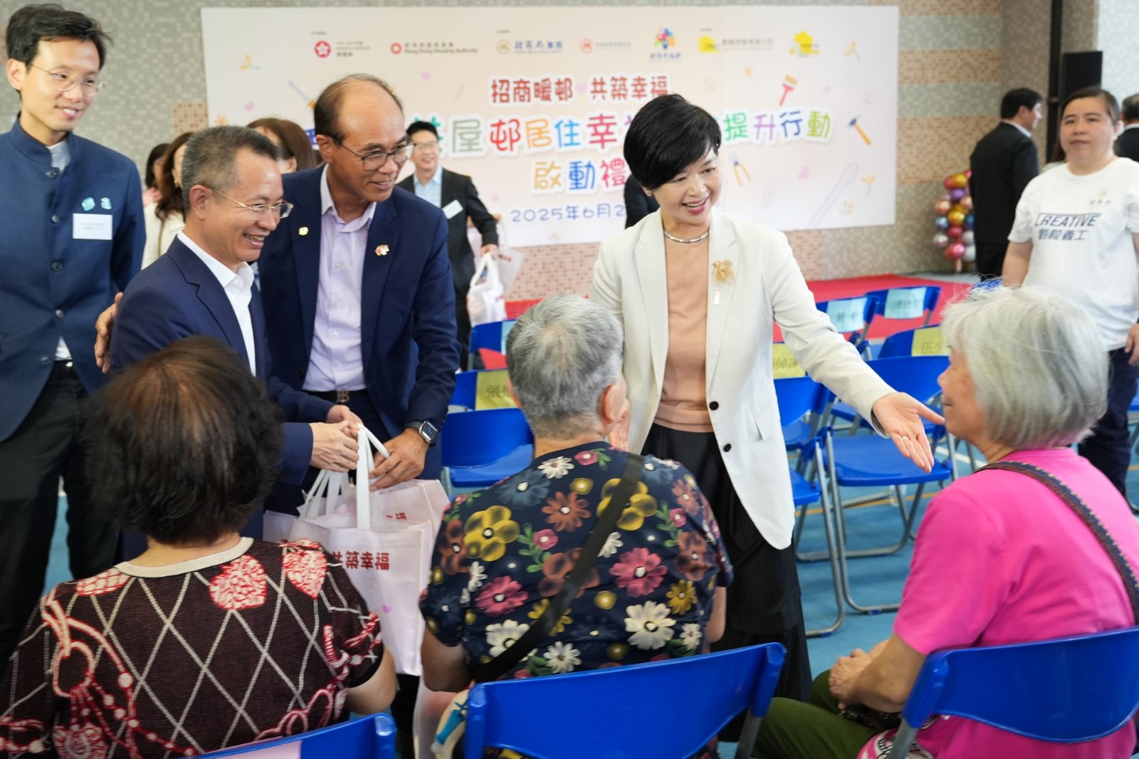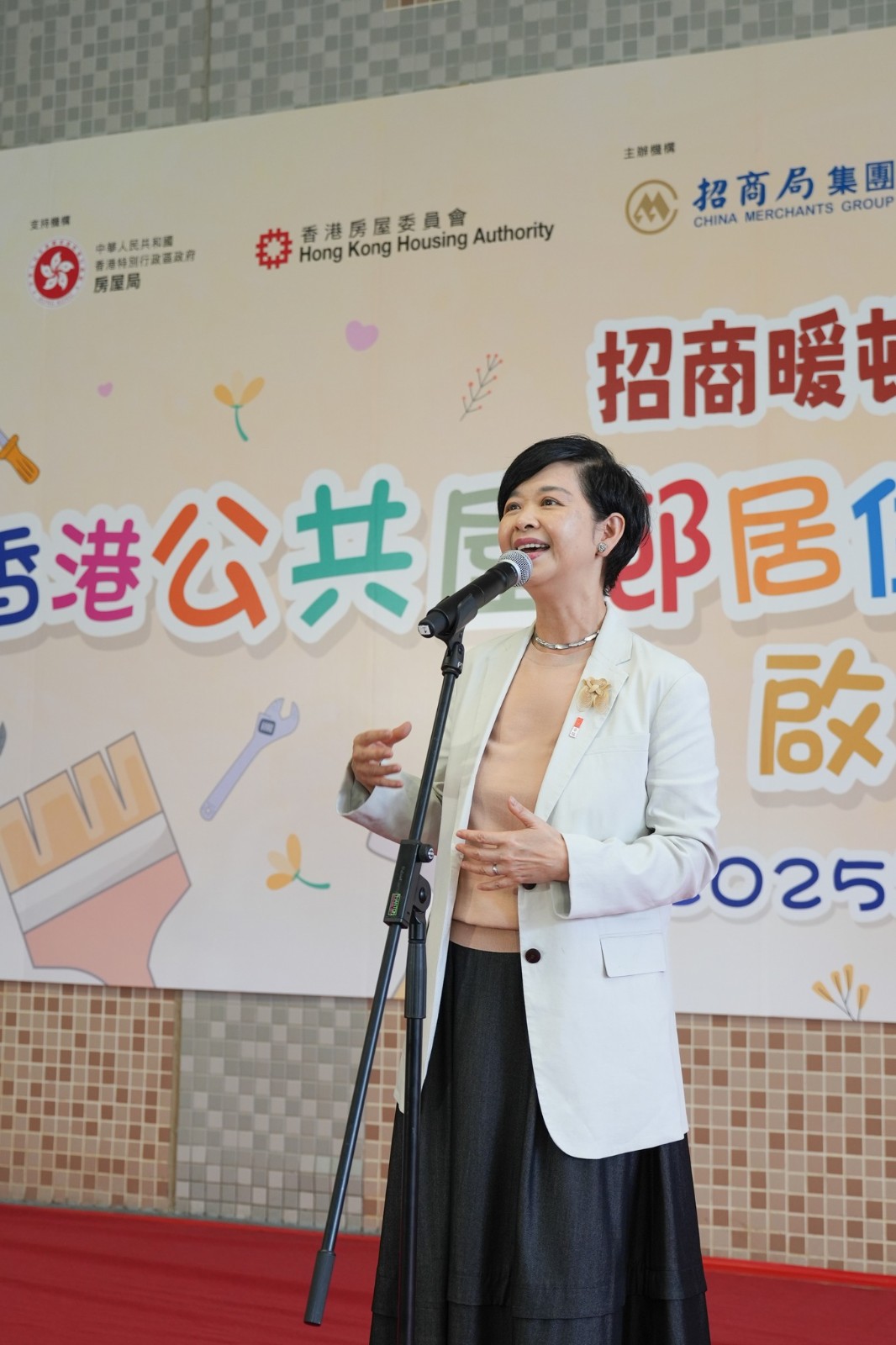 房屋局局長何永賢表示,在推展「共築幸福」理念以來,局方一直都感受到社會各界的熱心、對有需要住戶的關懷。早前,她到葵涌石籬(二)邨出席由招商局集團主辦的「招商暖邨·共築幸福」啟動禮,見證招商局在深化「招商暖心維修隊專案」的基礎上,再開展居住幸福專項提升行動,為石籬(二)邨和長康邨的長者安裝適老化家居生活扶手,關愛公屋長者居家生活安全。