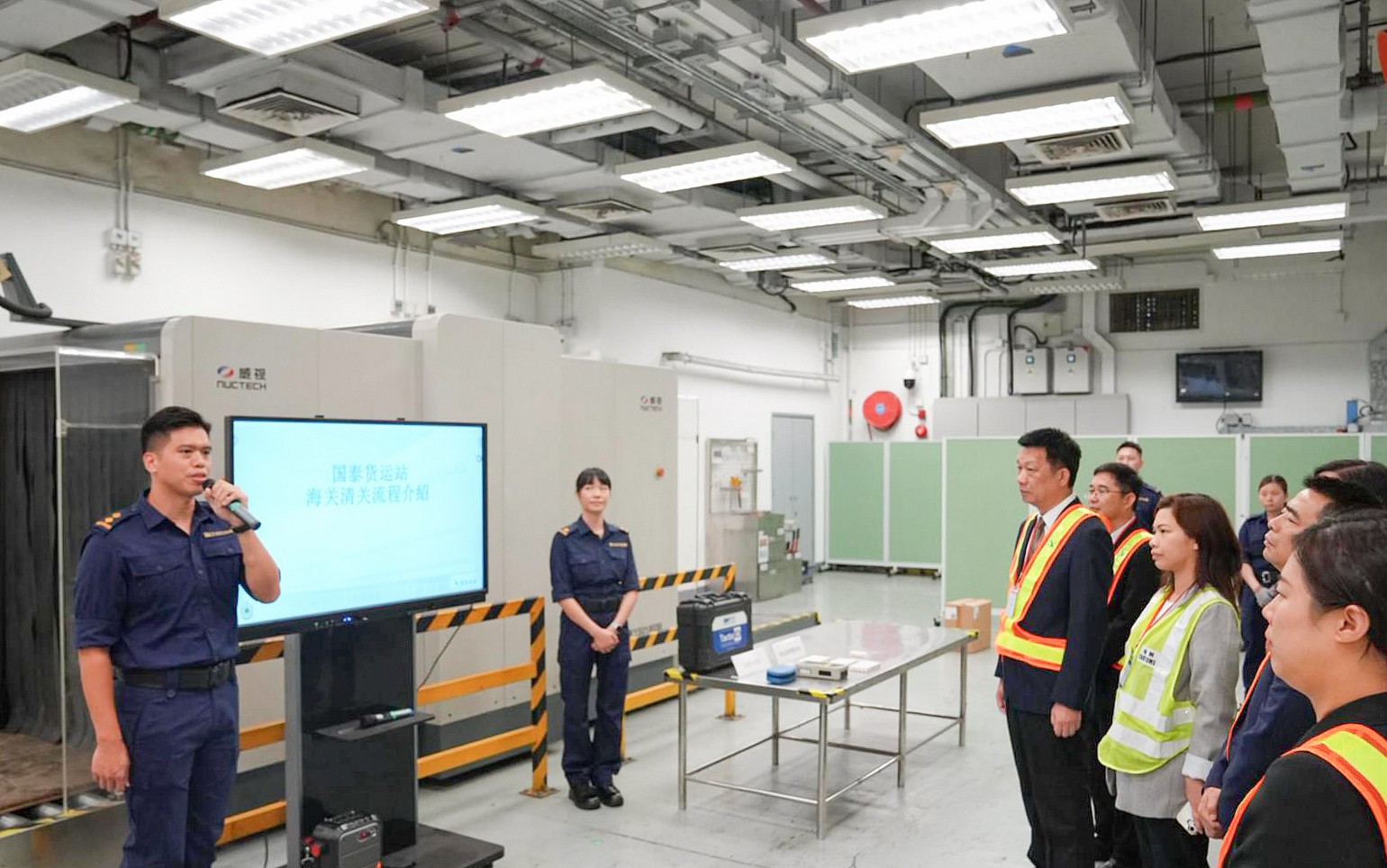 其後,代表團在香港機場管理局人員安排下參觀香港國際機場及西碼頭,並在香港海關陪同下前往國泰航空貨運站考察,以了解香港海關在「海空貨物聯運」模式下的一站式清關流程及相關設施。