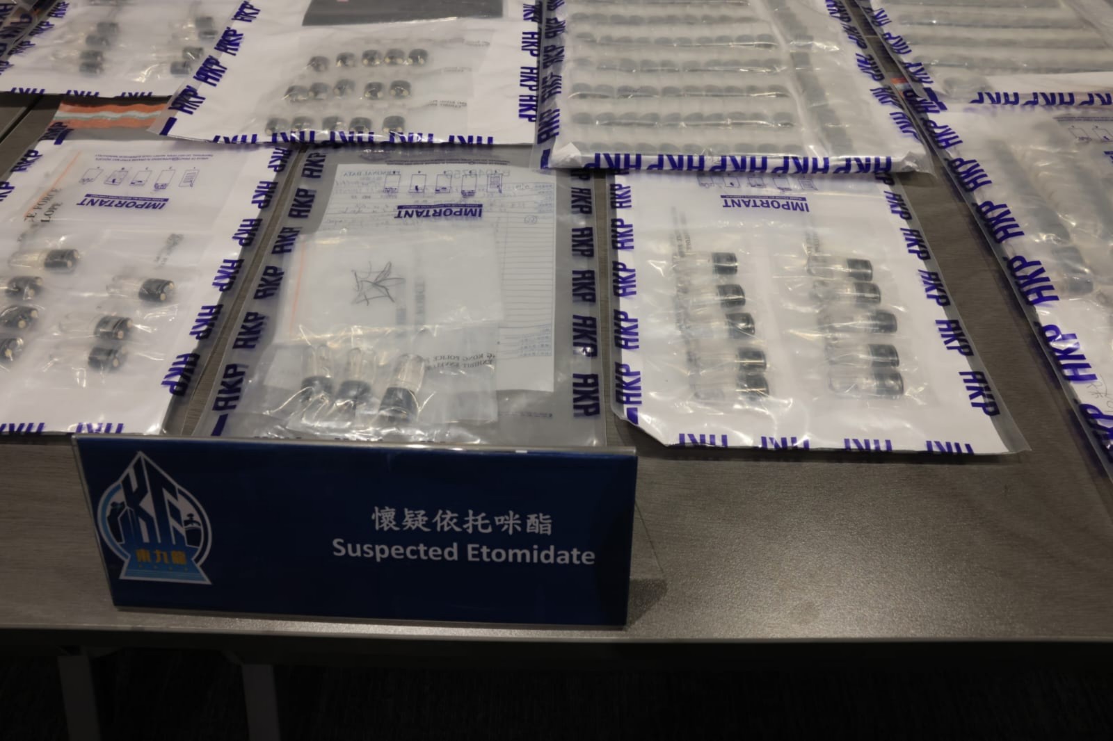 調查發現不少毒品拆家透過社交媒體販售依托咪酯,於5月至8月派探員「放蛇」喬裝買家,在不同的社交媒體上向拆家購買依托咪酯、大麻及可卡因搜集罪證。及後鎖定多名毒販身份及3個毒品儲存倉庫位置,至本月25至28日採取行動,突擊搜查觀塘一工廠大廈單位、深水埗唐樓及大埔村屋,檢獲大量不同類型毒品,並以「販運危險藥物」罪名拘捕2男3女(22至56歲)。