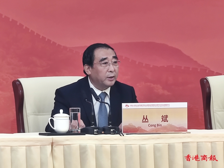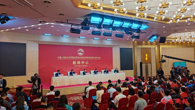 8月29日下午,中國人民抗日戰爭暨世界反法西斯戰爭勝利80周年紀念活動新聞中心舉辦第一場記者見面會,請中國國民黨革命委員會中央委員會副主席陳星鶯、中國農工民主黨中央委員會副主席王路、中國致公黨中央委員會副主席盧國懿、九三學社中央委員會副主席叢斌、台灣民主自治同盟中央委員會副主席江利平介紹對抗日戰爭的認識等方面情況,並回答記者提問。(圖:港商記者 林彬彬攝)