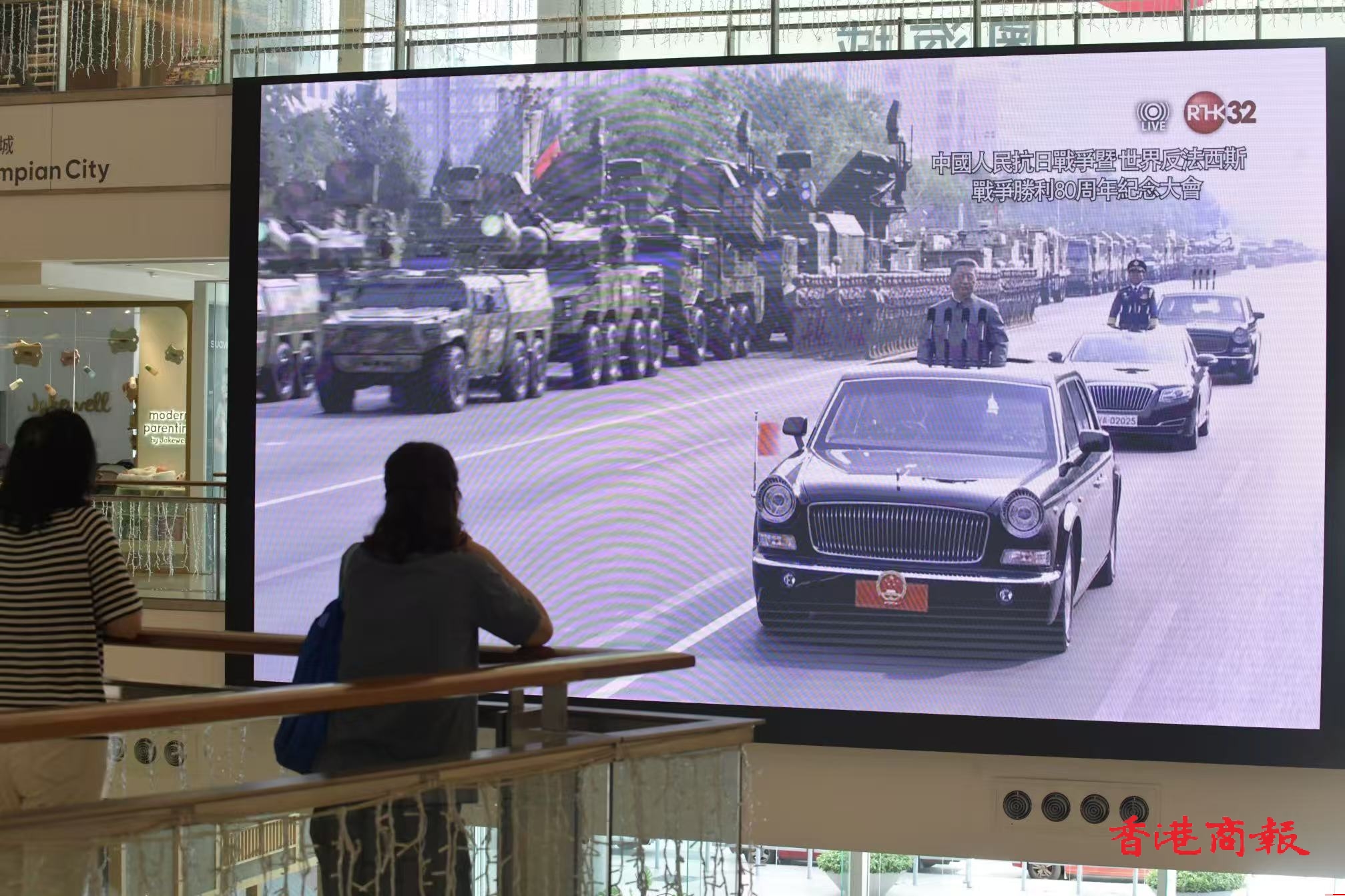 圖集 | 【抗戰勝利80周年】香港市民在商場觀看九三盛大閱兵直播