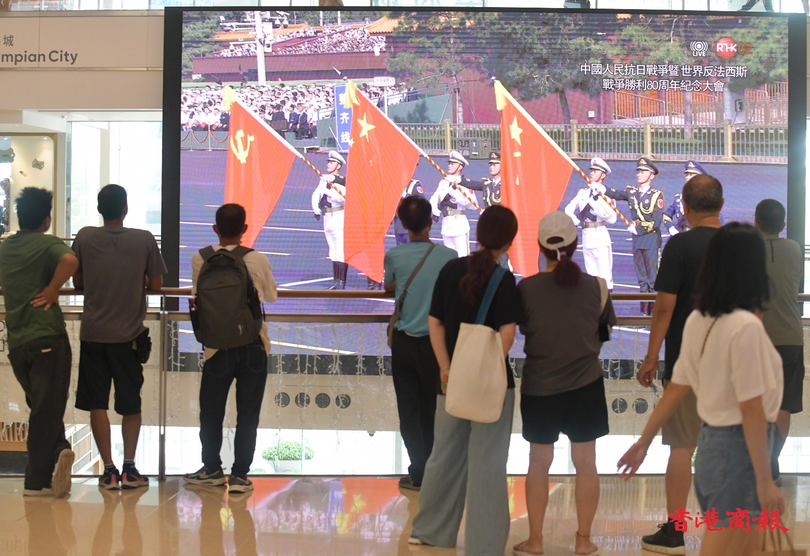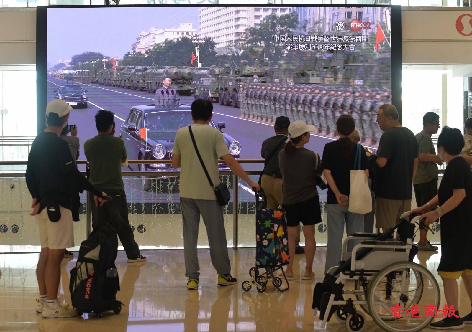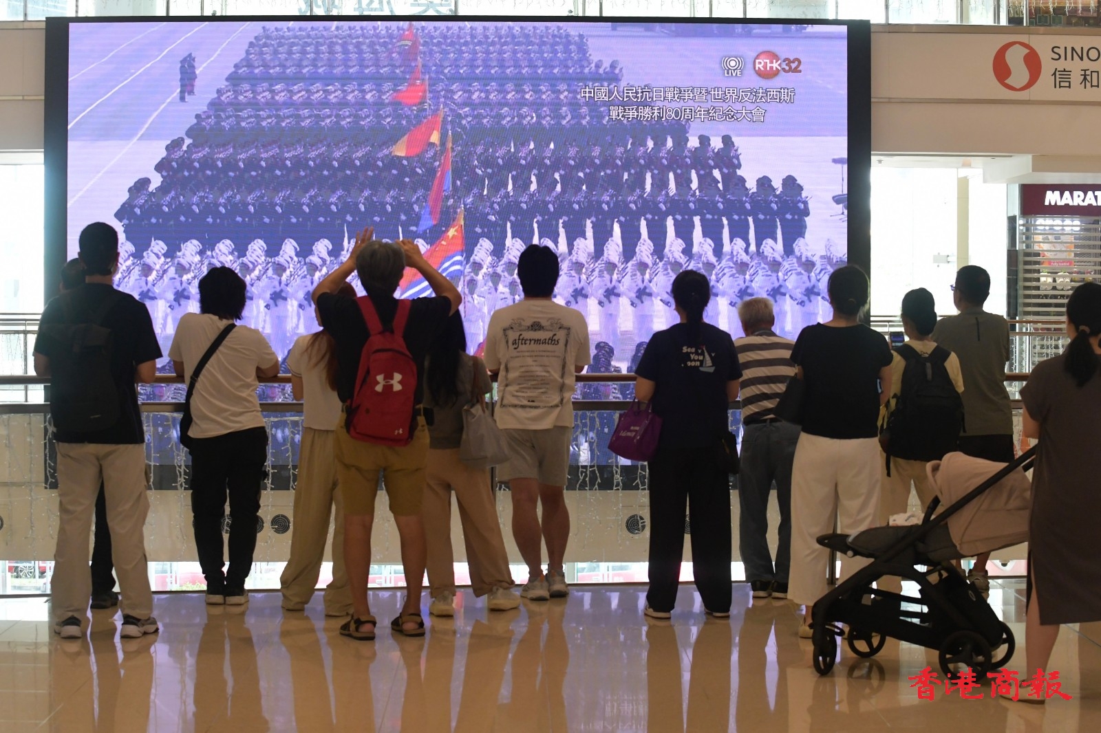圖集 | 【抗戰勝利80周年】香港市民在商場觀看九三盛大閱兵直播