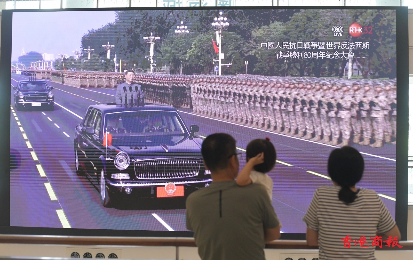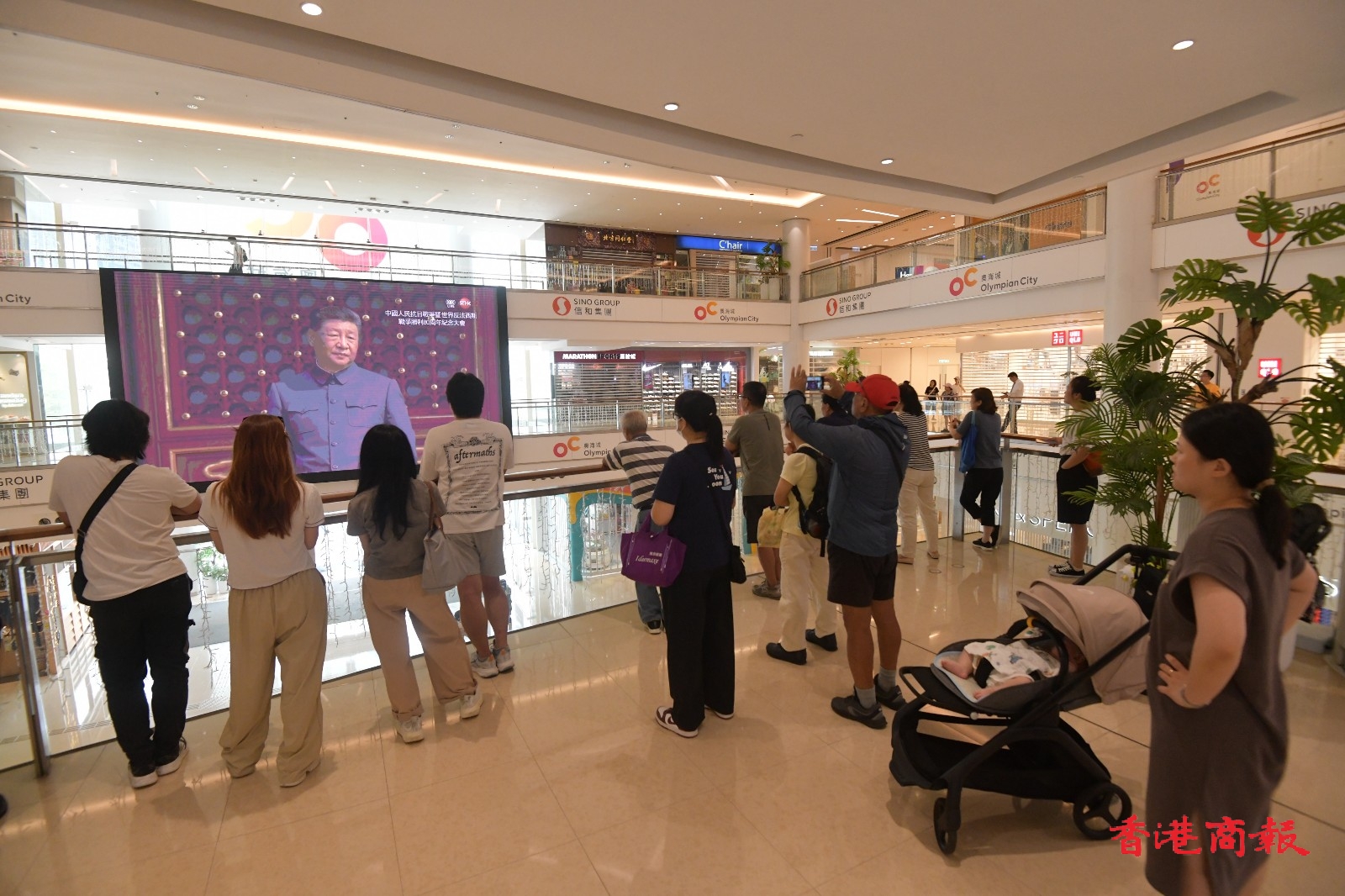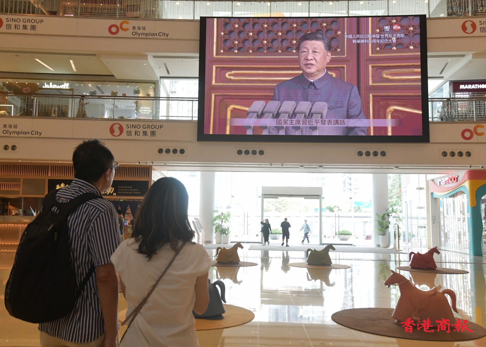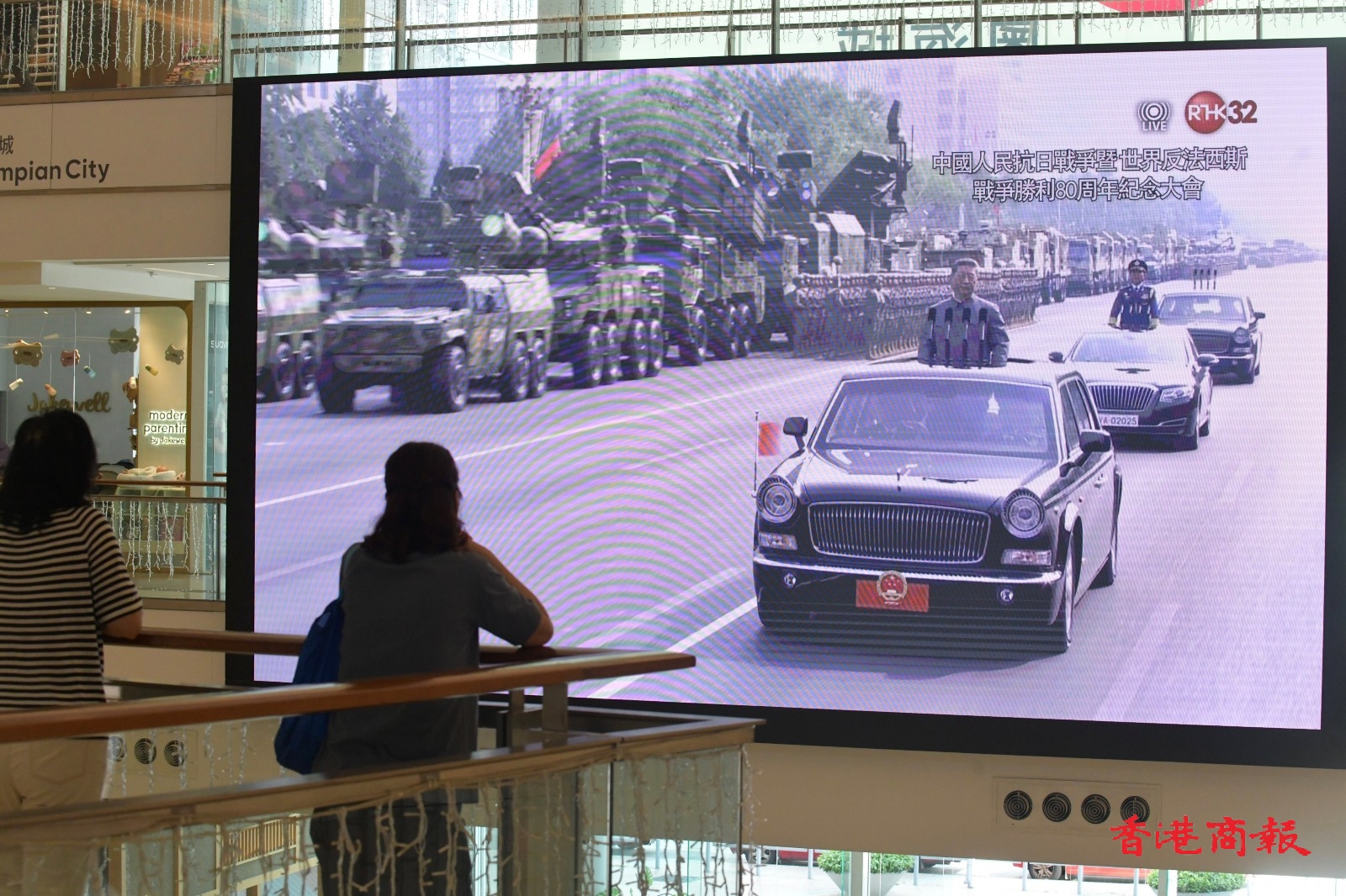 圖集 | 【抗戰勝利80周年】香港市民在商場觀看九三盛大閱兵直播
