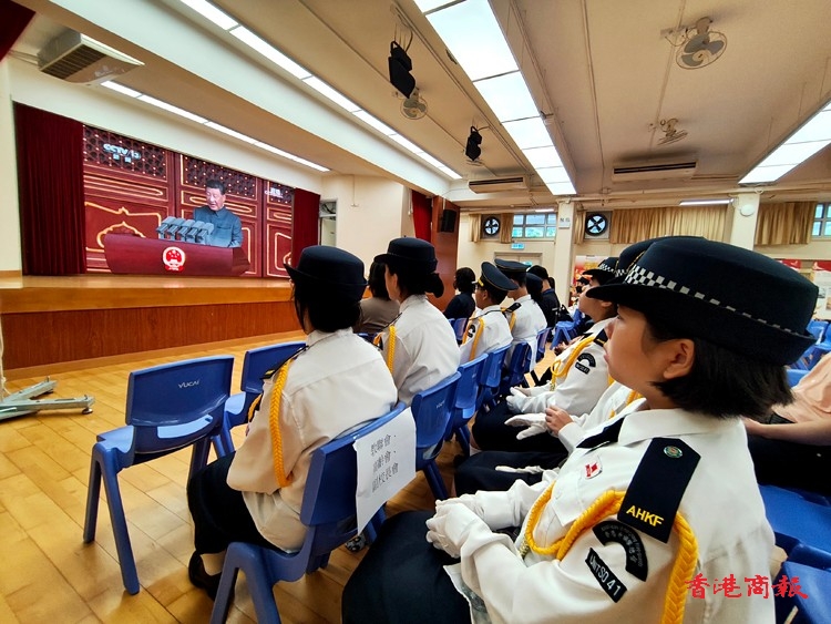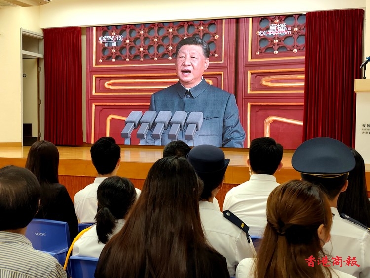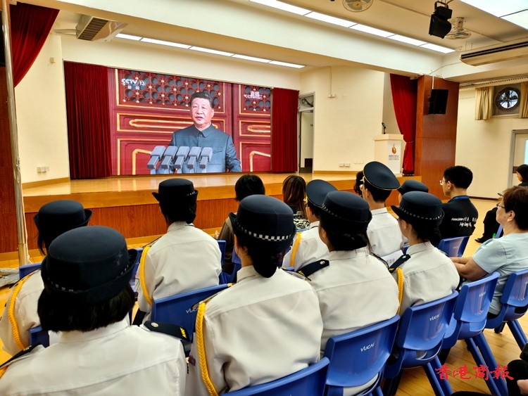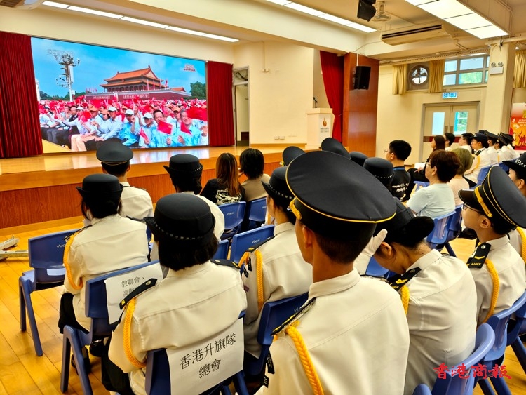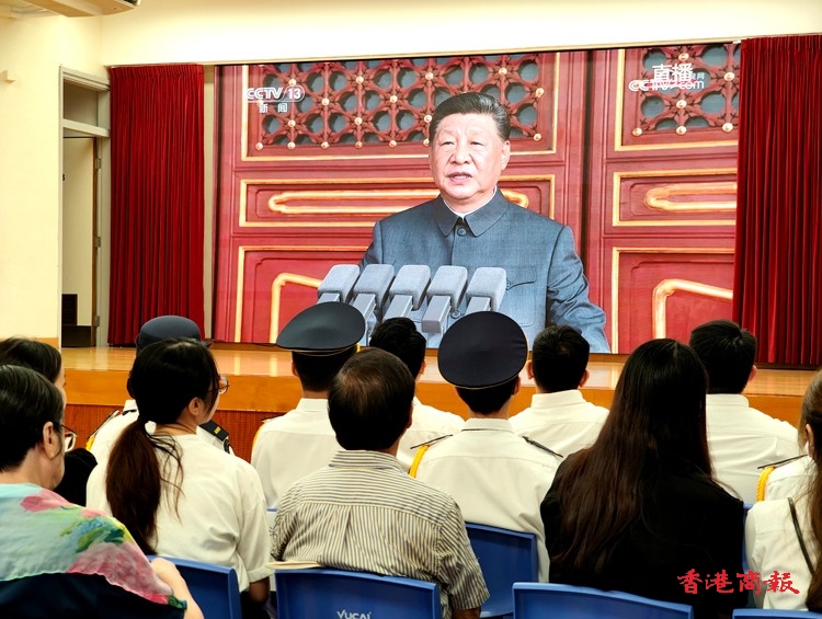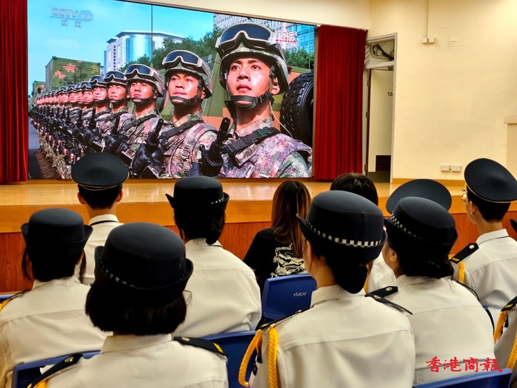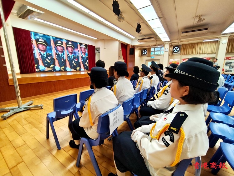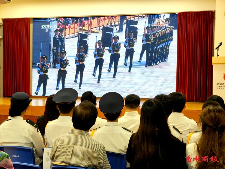 紀念中國人民抗日戰爭暨世界反法西斯戰爭勝利80周年大會今日(3日)在北京天安門廣場隆重舉行。學生等香港各界人士在愛國教育支持中心觀看閱兵儀式。(記者馮瀚文攝)