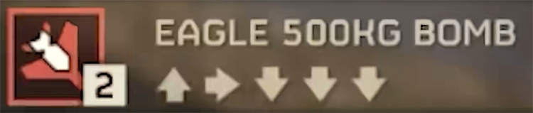 遊戲《絕地潛兵2》(Helldivers 2)中「『飛鷹』500千克炸彈」的指令與該串箭頭相符。(網絡圖片)
