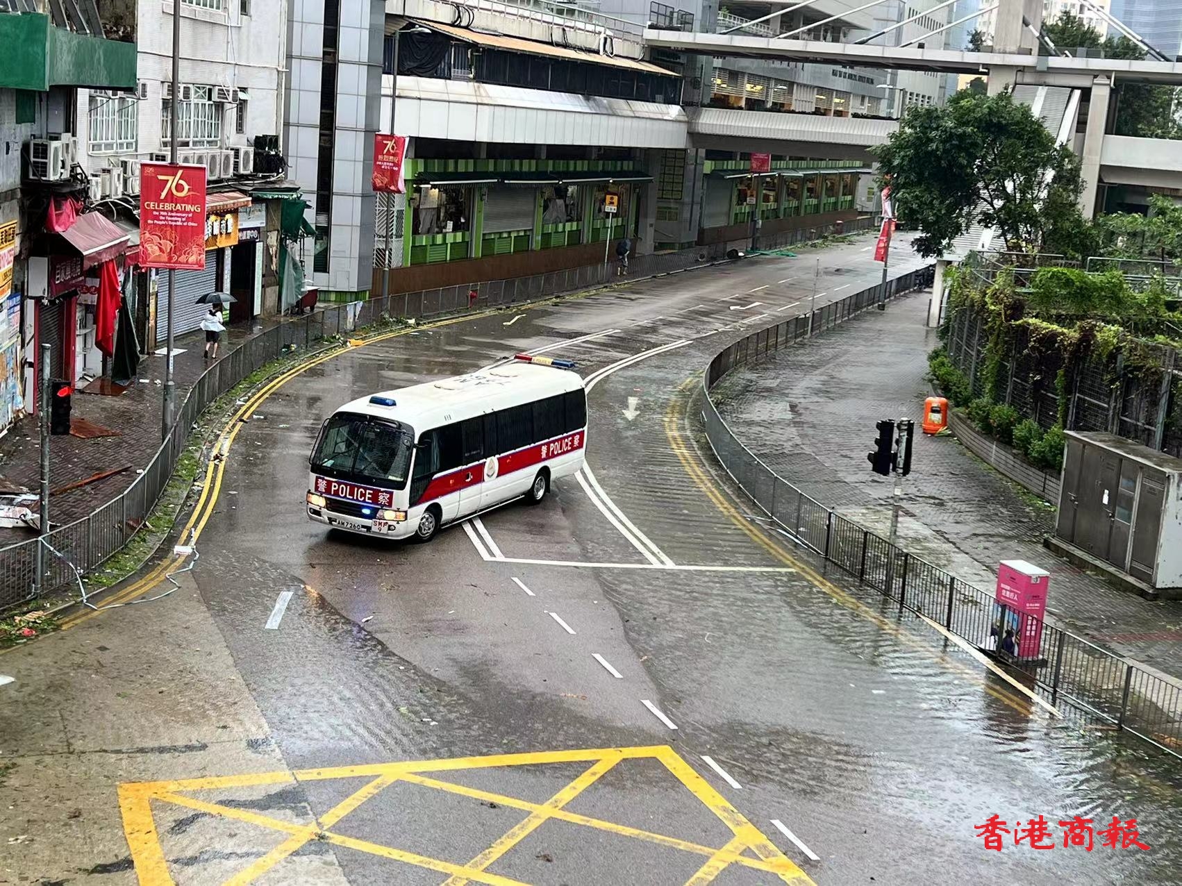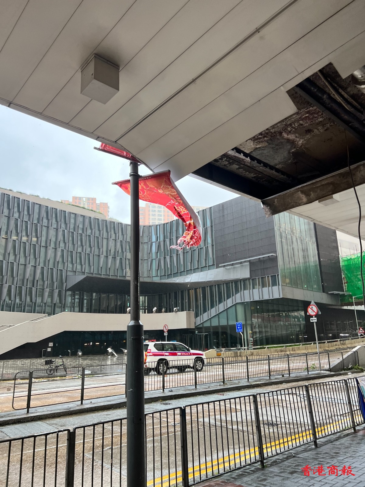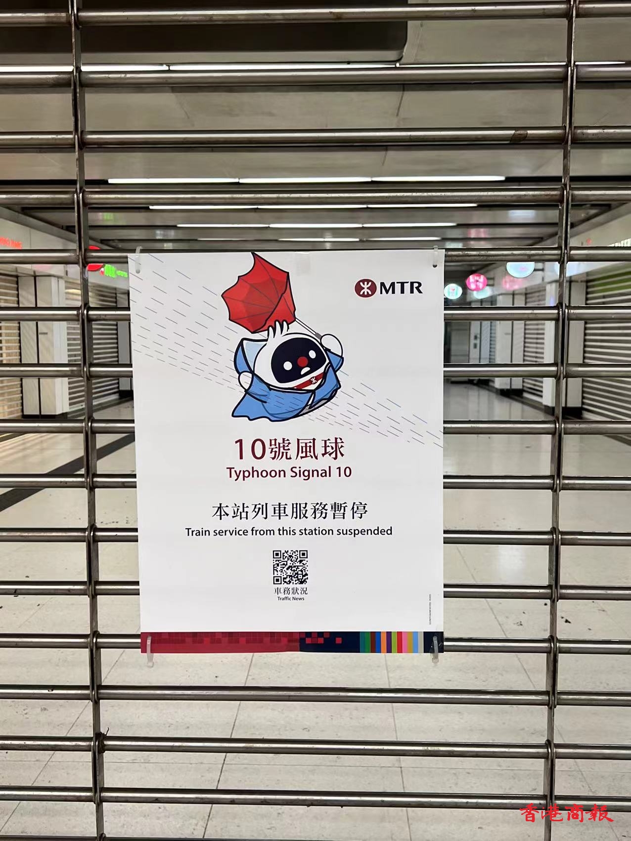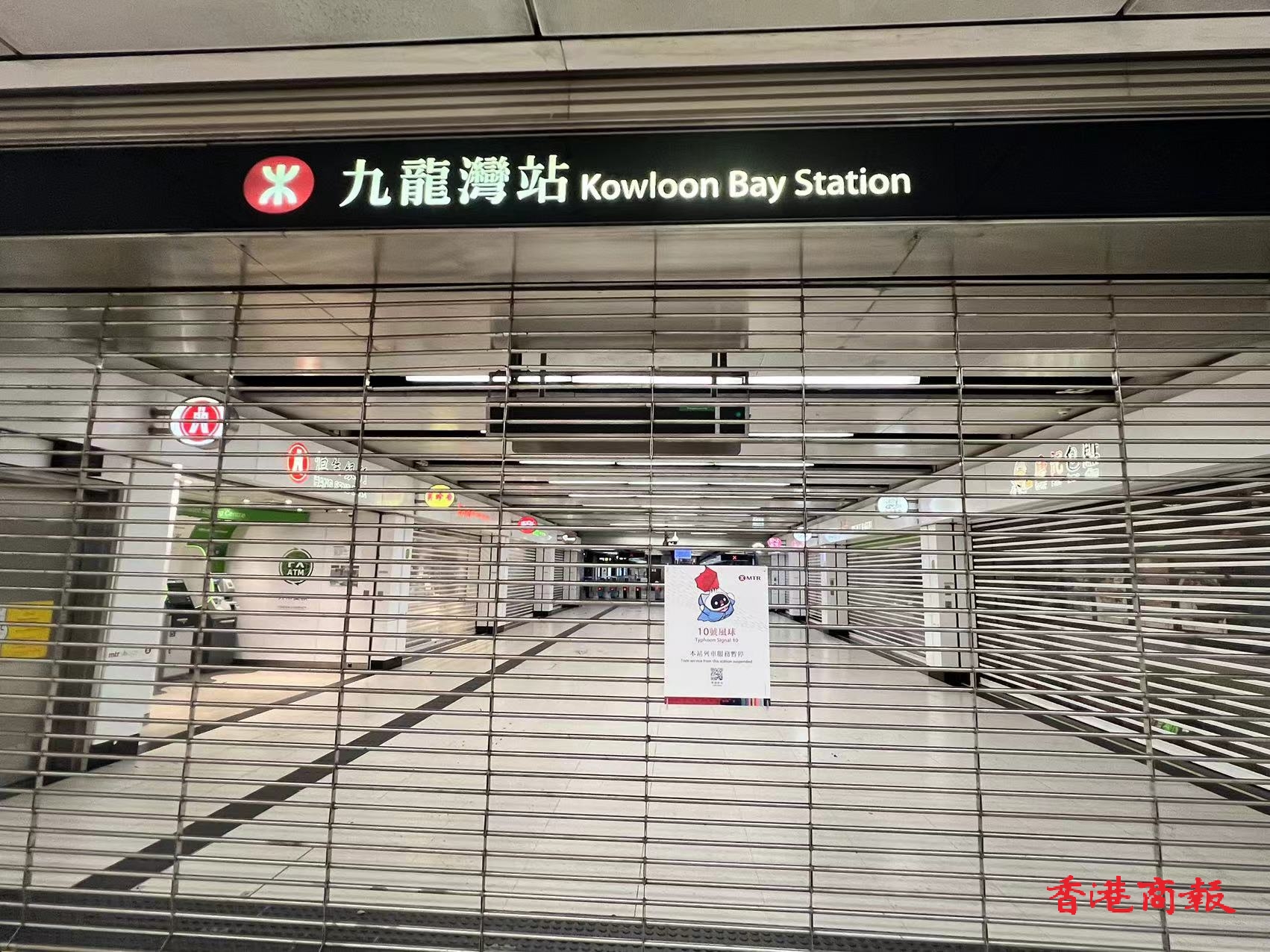屋苑掛十號波掛,九龍灣地鐵站亦告暫停服務。