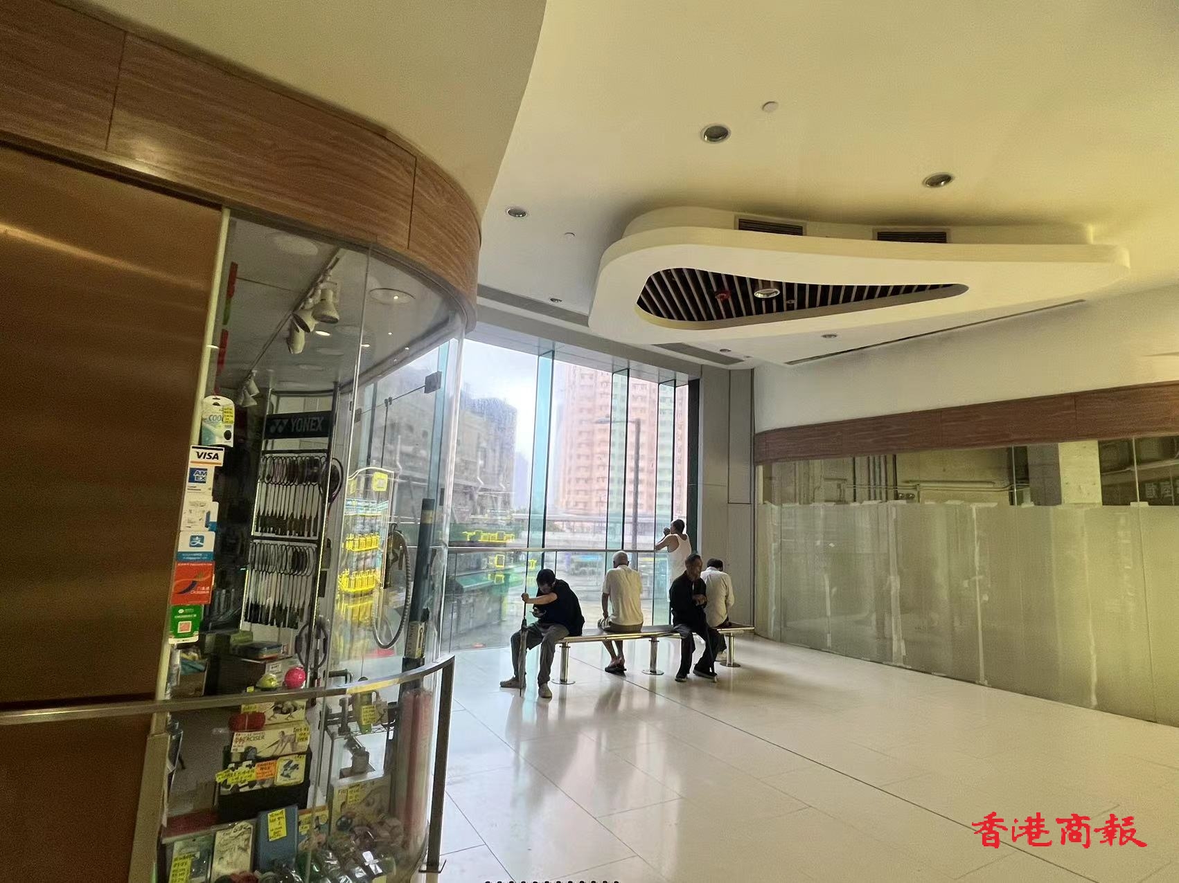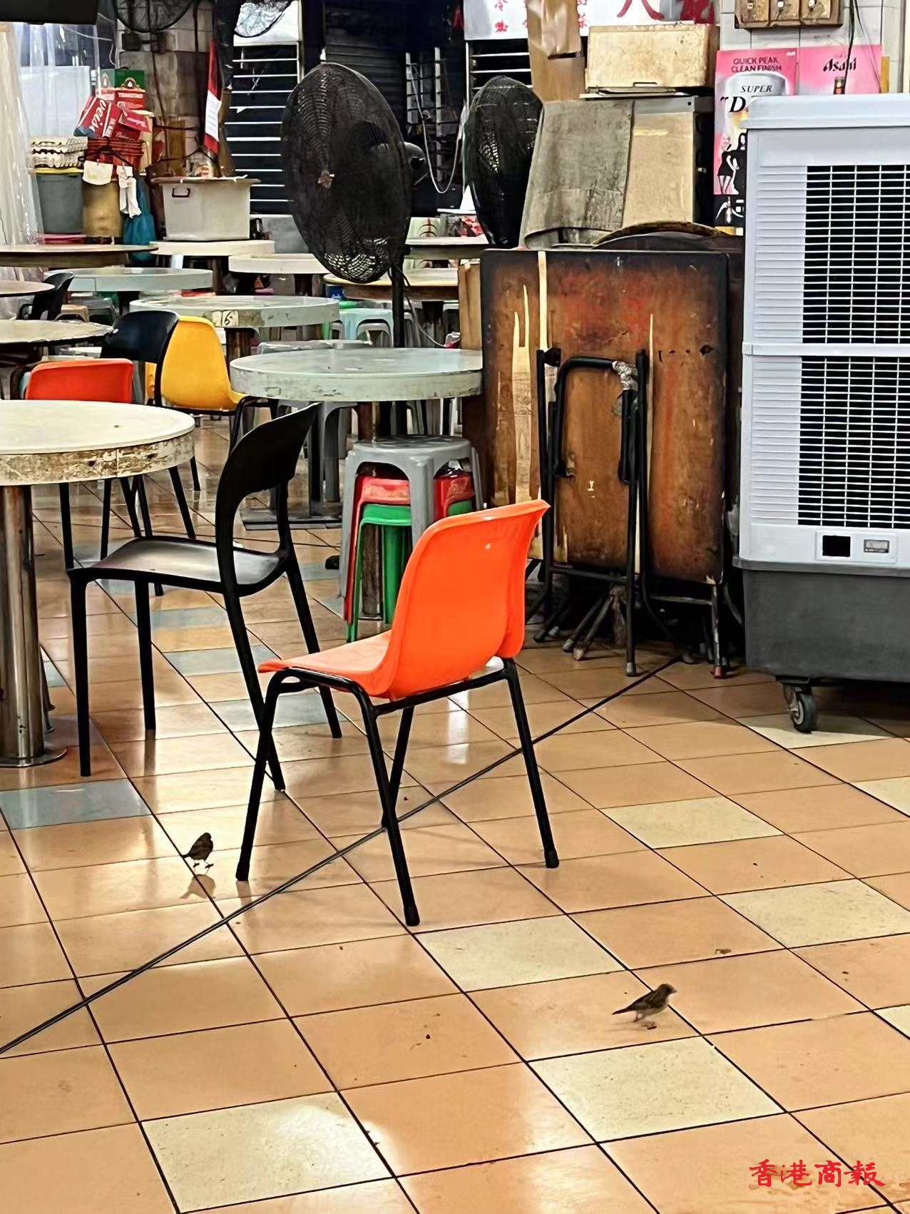 街市商場有人透窗觀風,麻雀無處可去,躲在空蕩街市覓食。