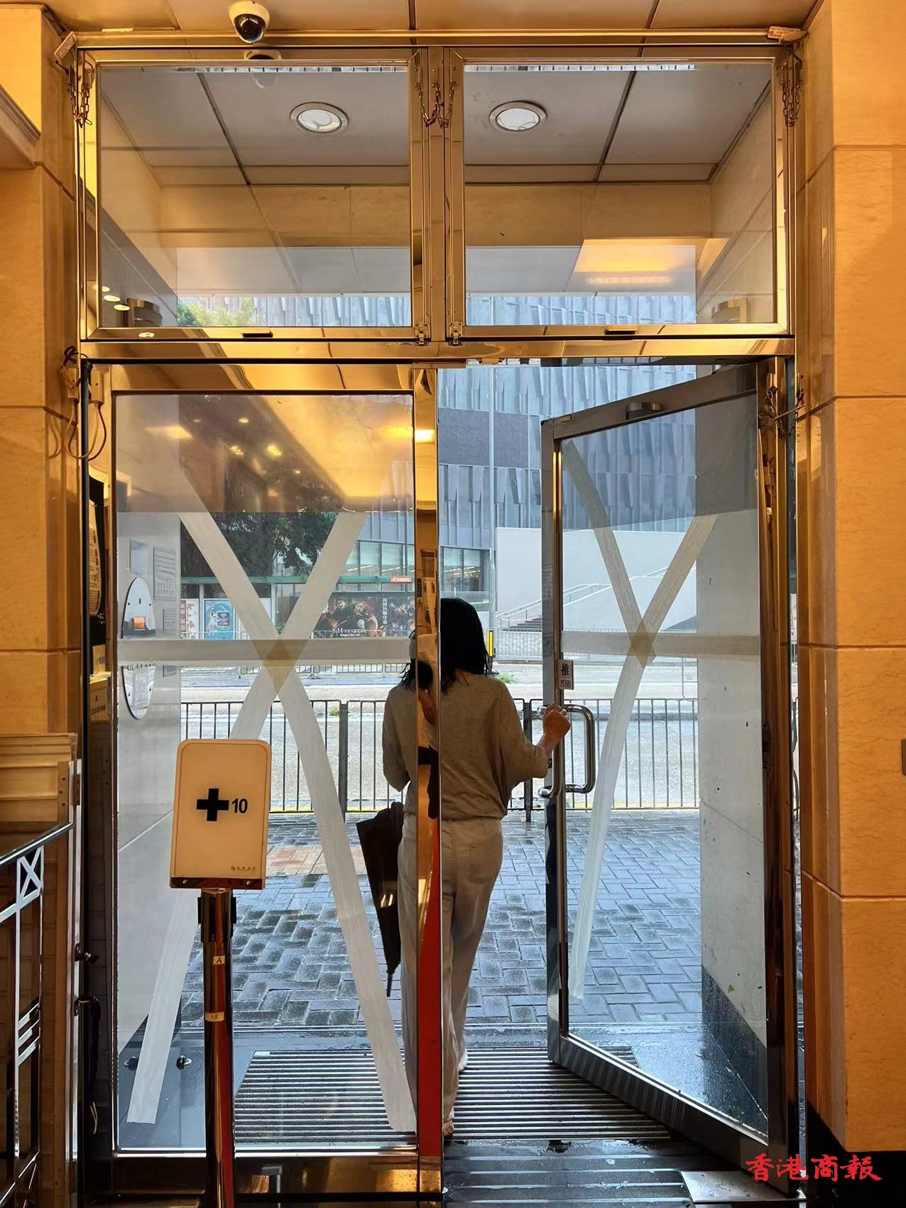 超強颱風「樺加沙」帶來猛烈風雨,破壞力大。9月24日,港商記者現場所見,淘大花園走廊天花板被吹開,木鋁板散落地上。