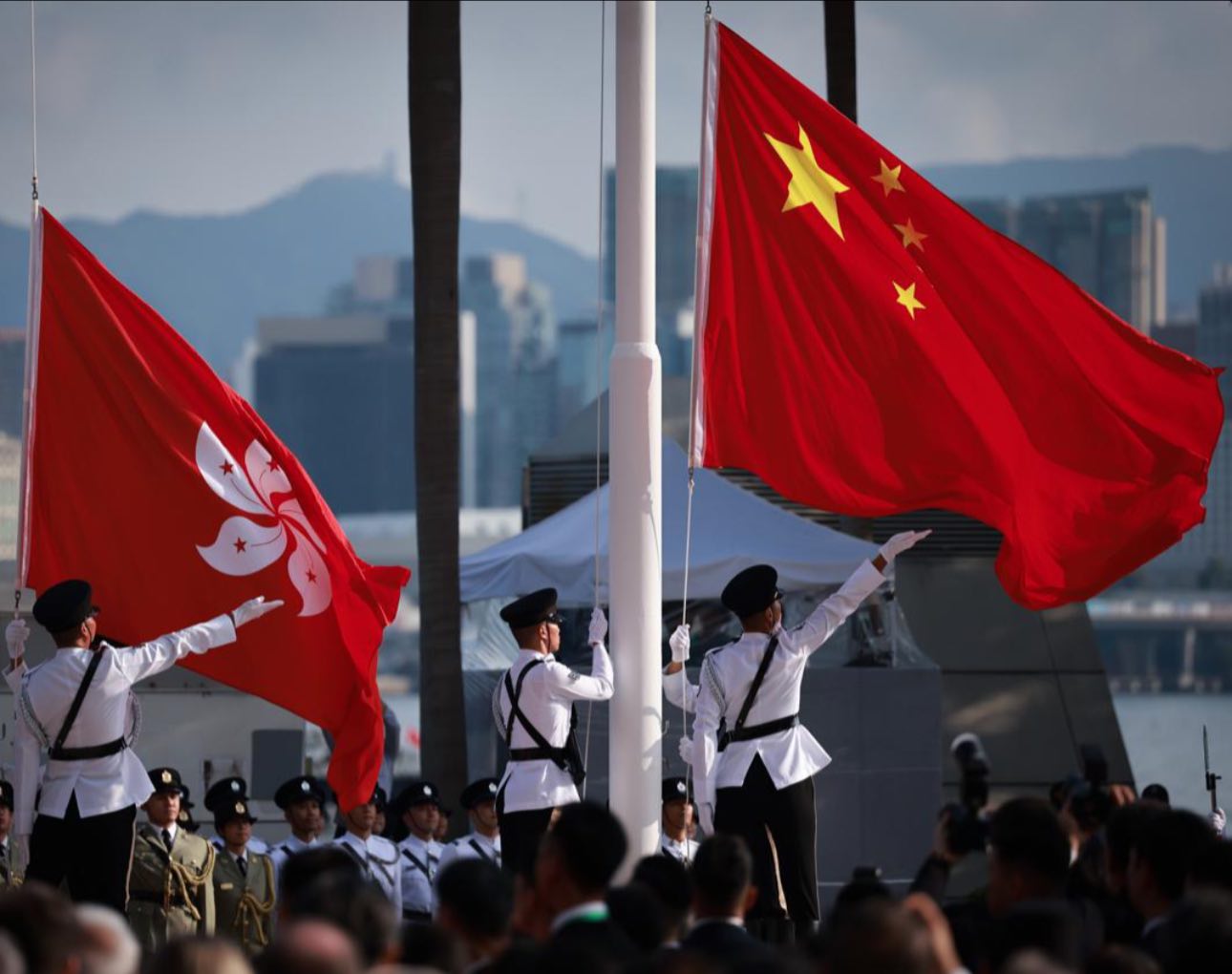 為慶祝中華人民共和國成立76周年,今日(1日)早上8時,特區政府在金紫荊廣場舉行升旗儀式。