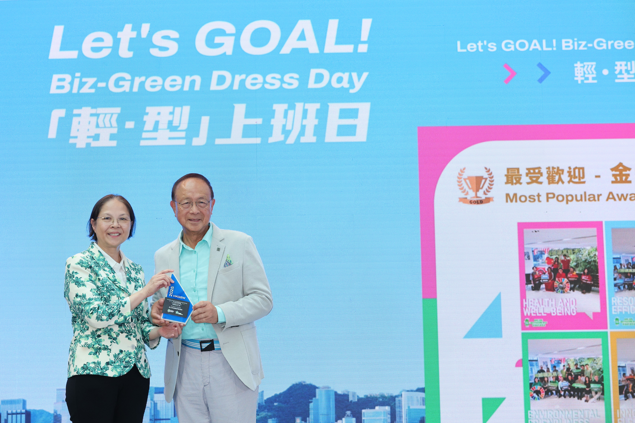 今年參與企業來自不同行業,並在四色穿搭、參與度、人氣及活力表現方面盡顯創意,積極實踐綠色辦公文化。獲「最受歡迎大獎」的呂元祥建築師事務所由創辦人兼主席呂元祥親臨領獎,並由環境及生態局副局長黃淑嫻頒發金獎獎座,為獎項增添象徵意義與分量。