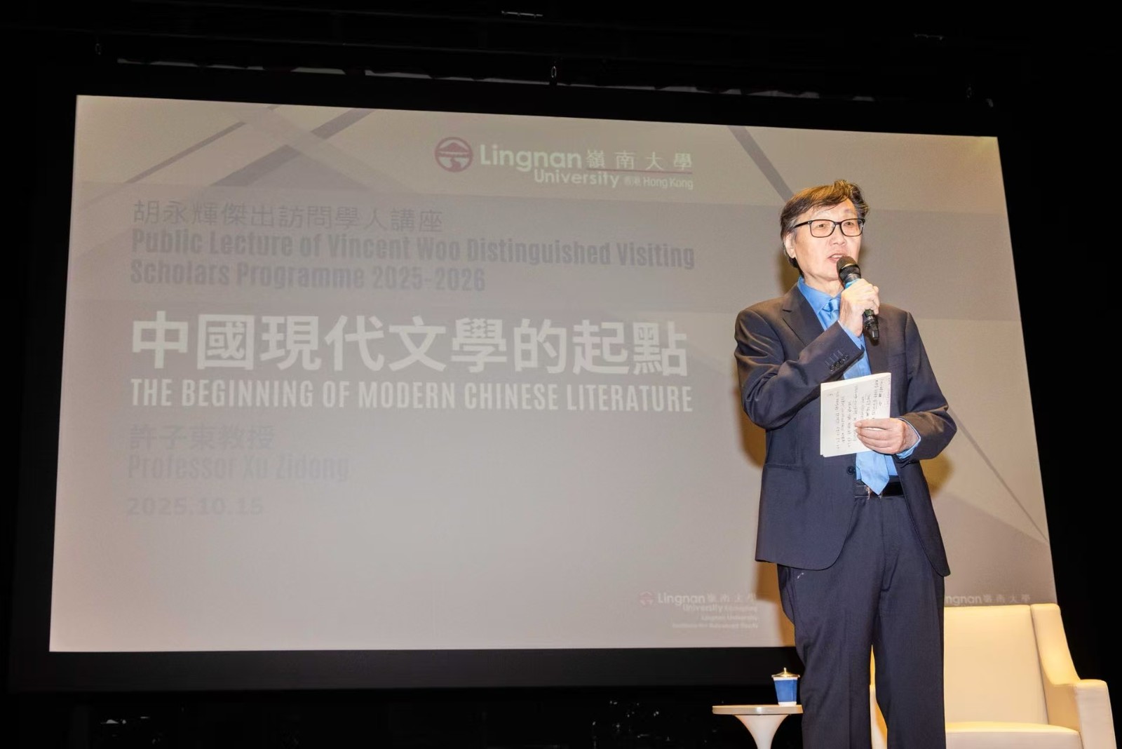 嶺南大學(嶺大)「嶺南高等研究院」今日(10月15日)假校園舉行頒授典禮,向嶺大前中文系教授兼系主任許子東教授頒授「資深嶺南學者」榮銜,以表彰其在中國現代文學領域作出的重要貢獻。許教授同場以「中國現代文學的起點」為題舉行公開講座,就其最新出版著作《許子東文集》與在場師生分享多年學術的研究成果,及探討中國現代文學史的關鍵議題。講座吸引約700名師生及文學愛好者參與,為公眾提供一個促進文化對話的交流平台。