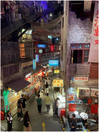 晚餐我們來到了充滿特色的超級文和友,體驗湖南另一張重要名片: 文創。這座六層樓的建築遠不止是餐廳,更是一個精心構建的「復古沉浸式空間」,完整重現了八十年代的老長沙街景。從斑駁的牆畫、復古的招牌到充滿年代感的生活物件,每一處細節都讓同學們仿佛穿越時空。在這裏,香港學子不僅品嘗到地道的湘菜小吃,更通過這種全方位的文化體驗,深刻感受到了長沙這座城市在現代化進程中,對於本土文化與集體記憶的珍視與傳承。