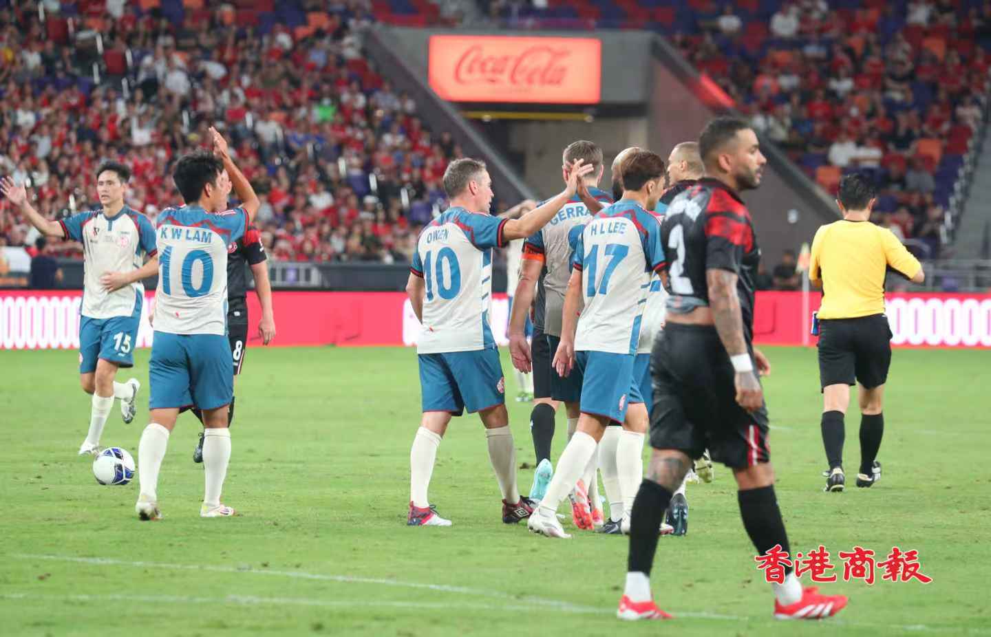 易邊後,港隊主帥韋斯活入替里奧費迪南,以球員身份亮相啟德主場館。謝拉特隊77分鐘由後備入替的林嘉緯射成3比1。沙夏之後為里奧費迪南隊再建一功,追近至2比3。路易斯加西亞完場前為謝拉特隊埋齋,射成4比2完場,兩軍球員賽後繞場一周向現場球迷致謝的同時,這場名宿雙紅會亦正式落幕。(文、圖:志誠)