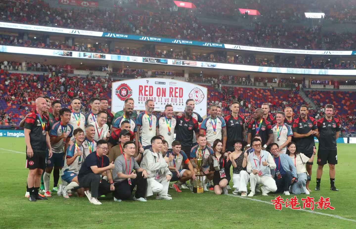 由英超傳奇球星謝拉特、里奧費迪南分別領軍的「雙紅會:謝拉特、里奧費迪南邀請賽」(RED on RED: Gerrard 11 vs Rio 11)今日(18日)在啟德主場館開打,賽事吸引了27,081名球迷進場,打破歷年名宿球賽紀錄,雙方獻上入球大戰,全場共有6個入球,結果謝拉特隊以4比2戰勝由里奧費迪南隊。