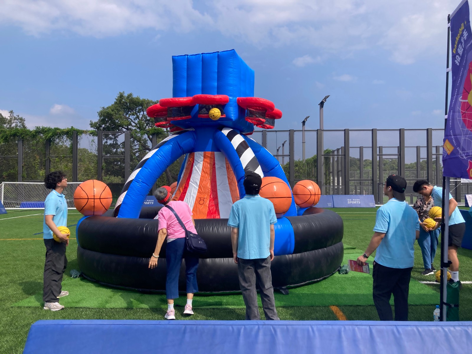 現場設置的30個特色攤位涵蓋匹克球、擊劍、旱地冰壺等潮流項目與傳統運動,搭配充氣城堡、小食彩繪、魔術表演等互動體驗,適配不同年齡層市民參與。現場攤位前都排起隊伍,有同鄉相約參與,有一家大小出席,個個都玩得開心又盡興。