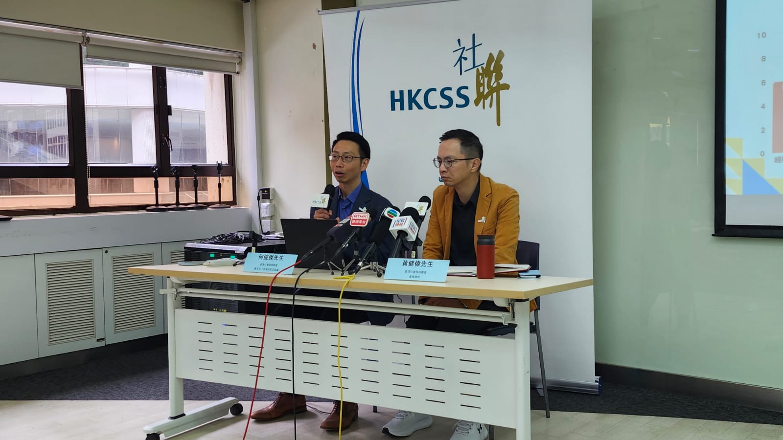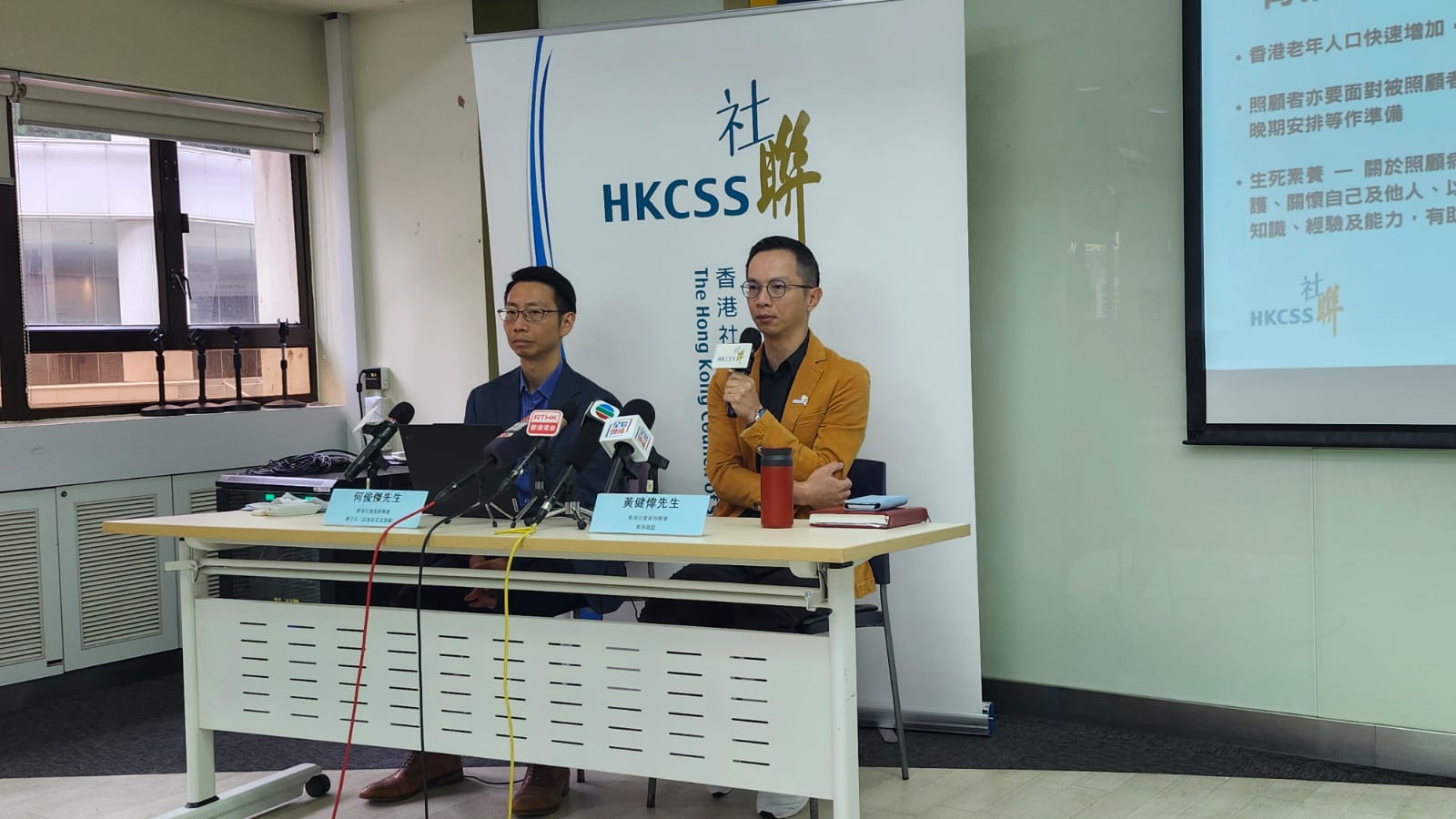 社聯總主任(政策研究及倡議)何俊傑(左)說,研究發現過半照顧者表達高負擔,逾四成有不同的健康問題。(記者 葉家亨攝)