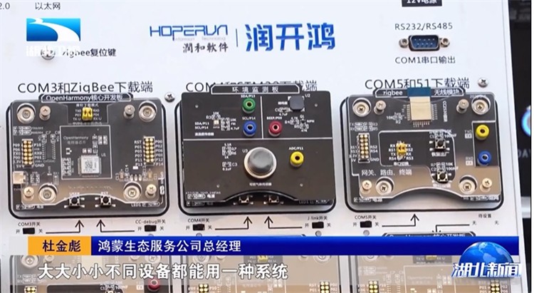 鴻蒙生態服務(深圳)有限公司總經理、鴻蒙生態創新中心主任杜金彪介紹:「不久的將來,在配備鴻蒙設備的環境中,您只需說『天黑了,請關燈』,它就能自動調節室內照明;說『這裏需要打掃』,它便會安排掃地機器人工作。」(圖源 中國光谷)
